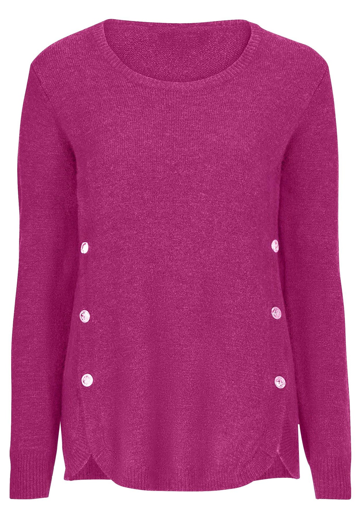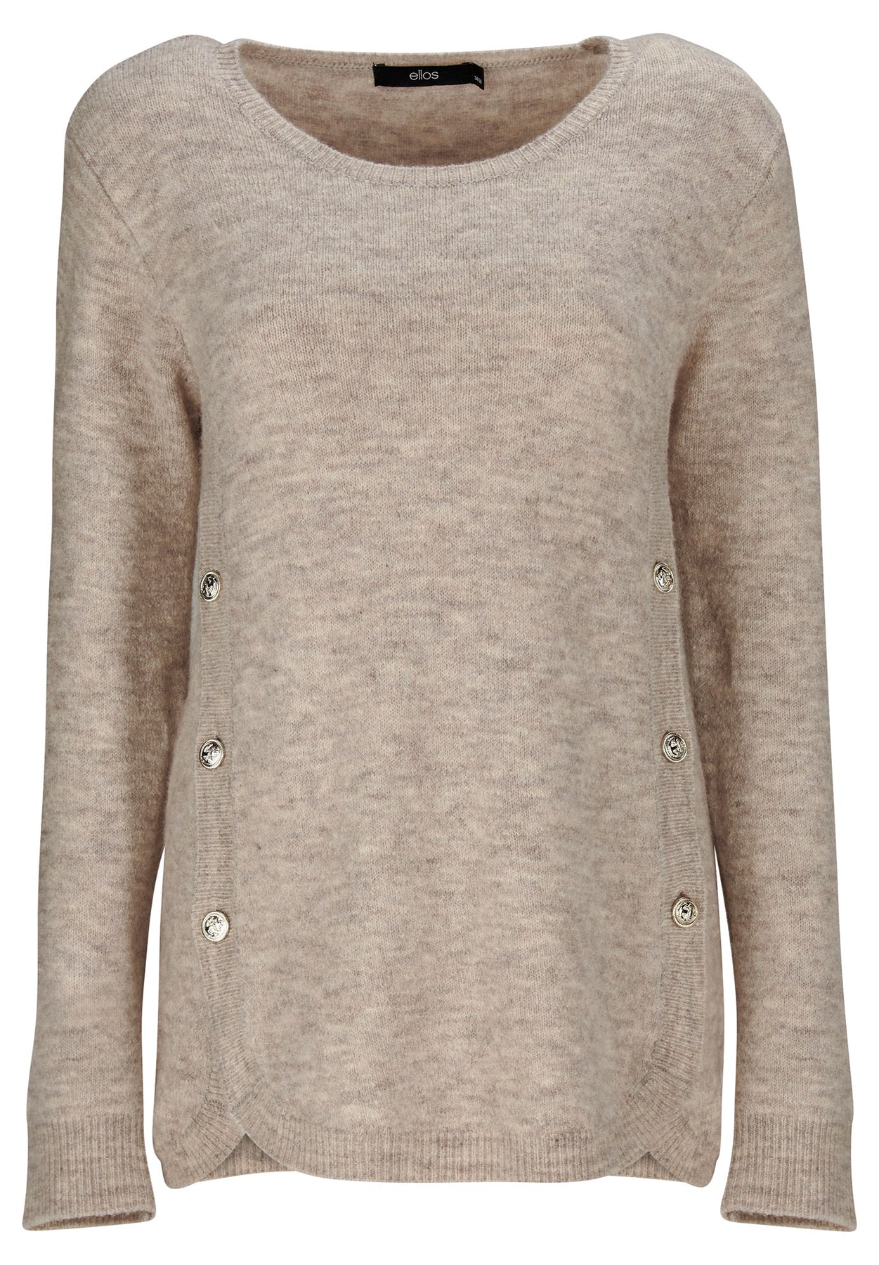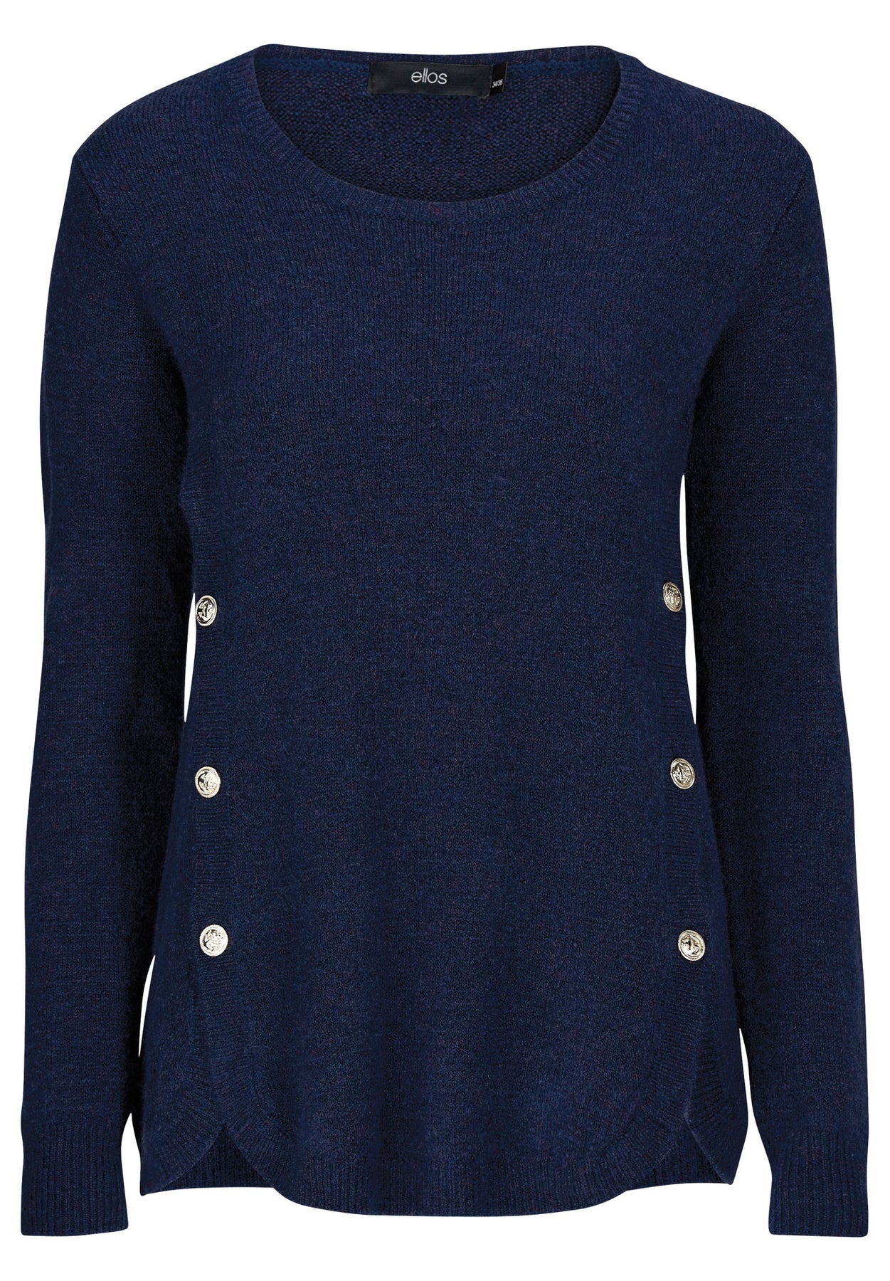 Stretch Scoop Neck Curved Hem With Buttons Pullover Sweater | ellos