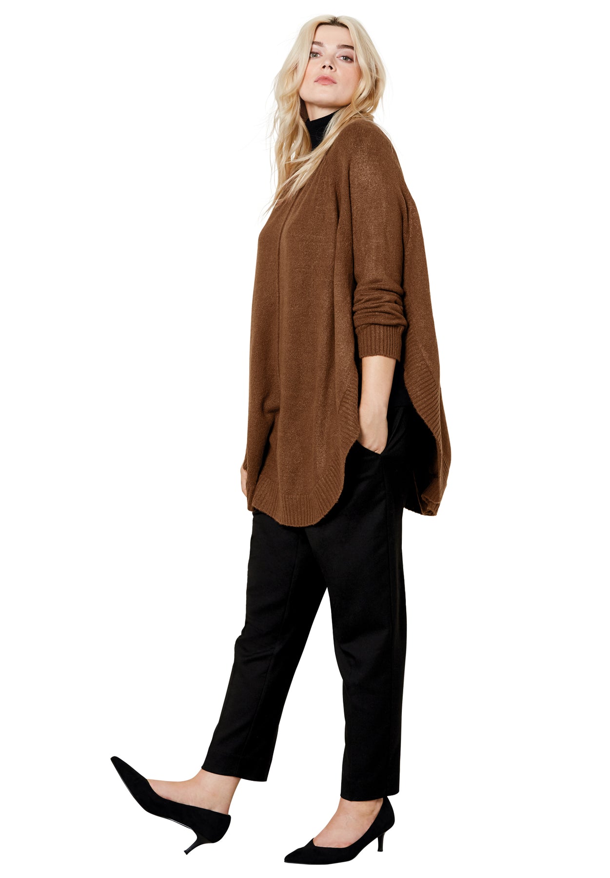 The elegant way to add warmth, our long-sleeved poncho features a ribbed scoop neckline and raglan sleeves with ribbed cuffs. For a polished look, the open sides are ideal for layering over a turtleneck or collared blouse. (Style note: a leather belt worn at the waist highlights natural curves.)