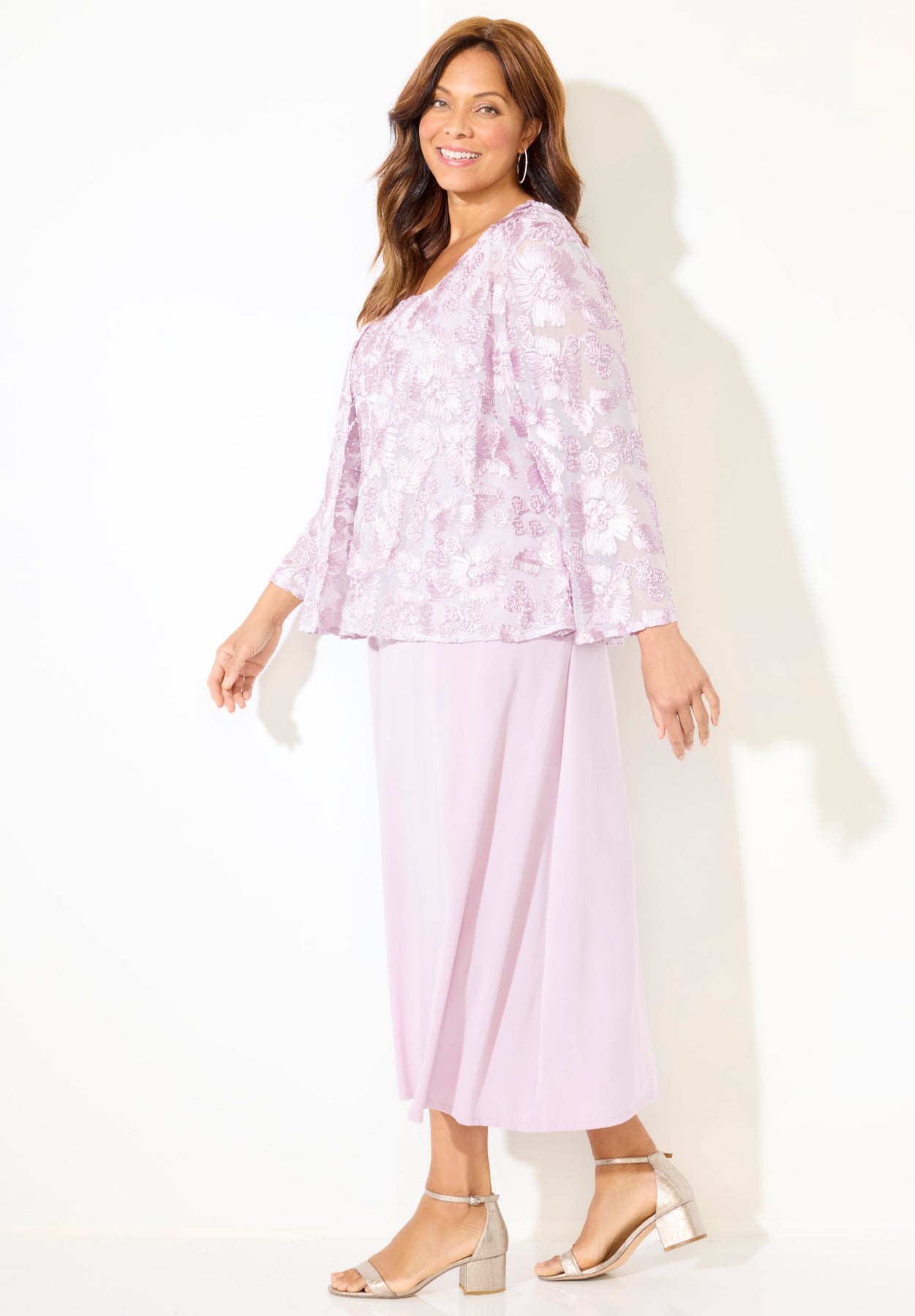 FIT: The maxi dress has an easy A-line silhouette with a square neckline, bra-friendly straps, flattering soutache embroidery overlay, and convenient side seam pockets. The relaxed fit jacket drapes the body beautifully with bracelet length sleeves.