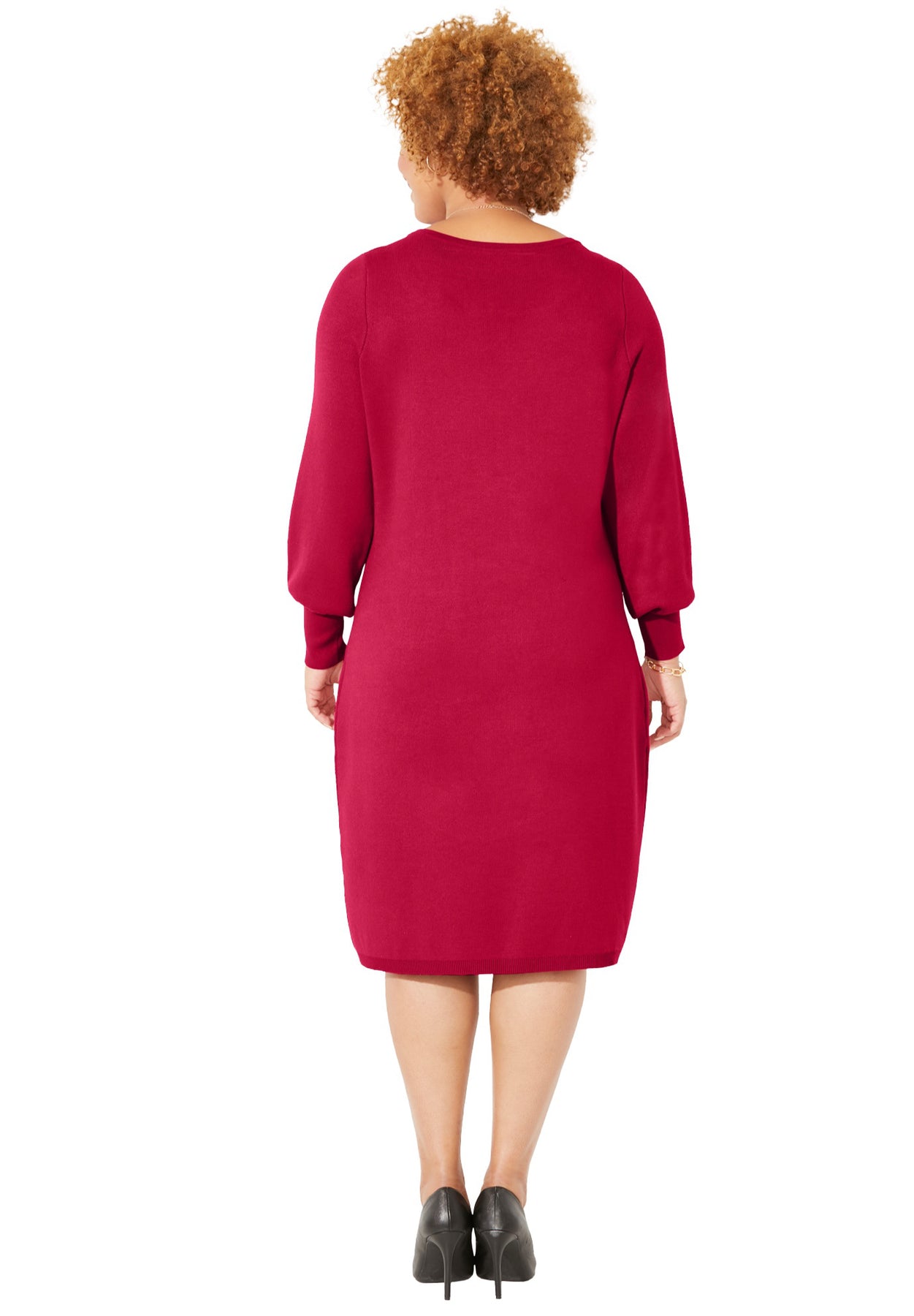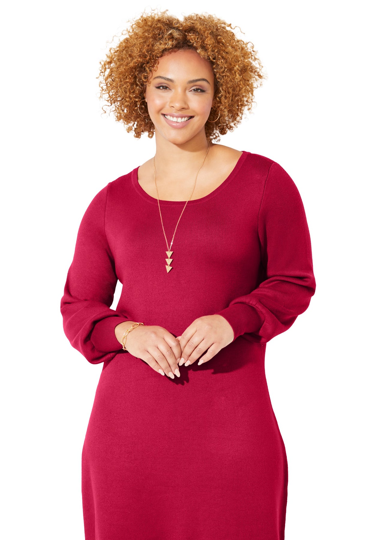 True to its roots as a timeless brand loved for its comfort and ease, this Liz&Me® sweater dress will be a favorite you'll treasure. With a flattering boat neckline and blouson sleeves, this cozy dress is a classic style with a touch of character. Pair it with boots for a perfect cool-weather outfit.