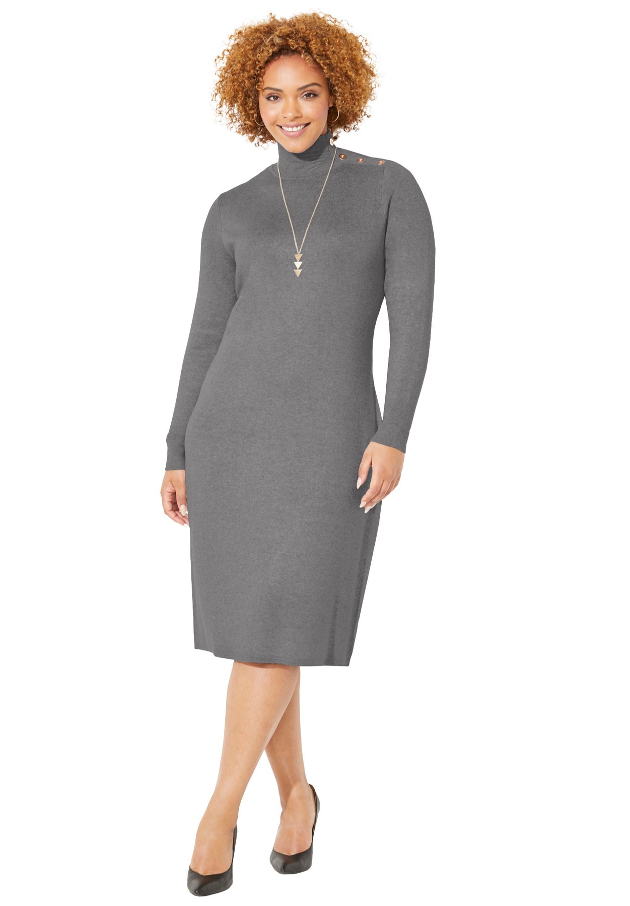 Cozy up to this timeless Liz&Me® sweater dress that will feel like a favorite from the moment you put it on. With a mock turtleneck to chase away the chill, you'll reach for this comfy classic again and again.