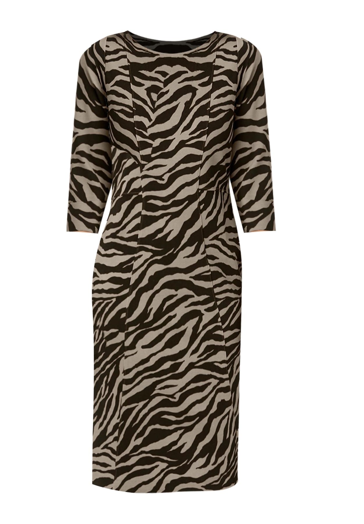 FIT: Relaxed and easy silhouette with boat neckline, princess seams and seamed waist. Cuffed sleeves with button detail. Back zip closure.