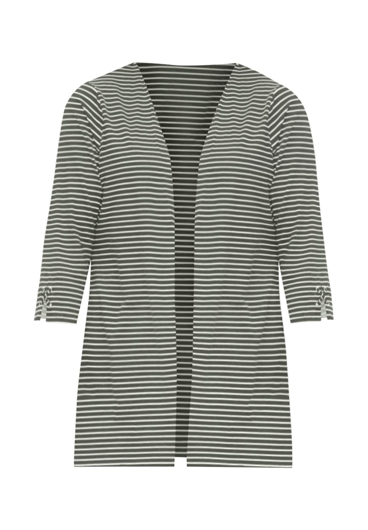 At last, a Suprema® top layer has arrived! Designed with an open front and 3/4 sleeves with button-tab detail, this is a polished piece crafted from the comfy stretch-cotton fabric you love. Wear it with everything.