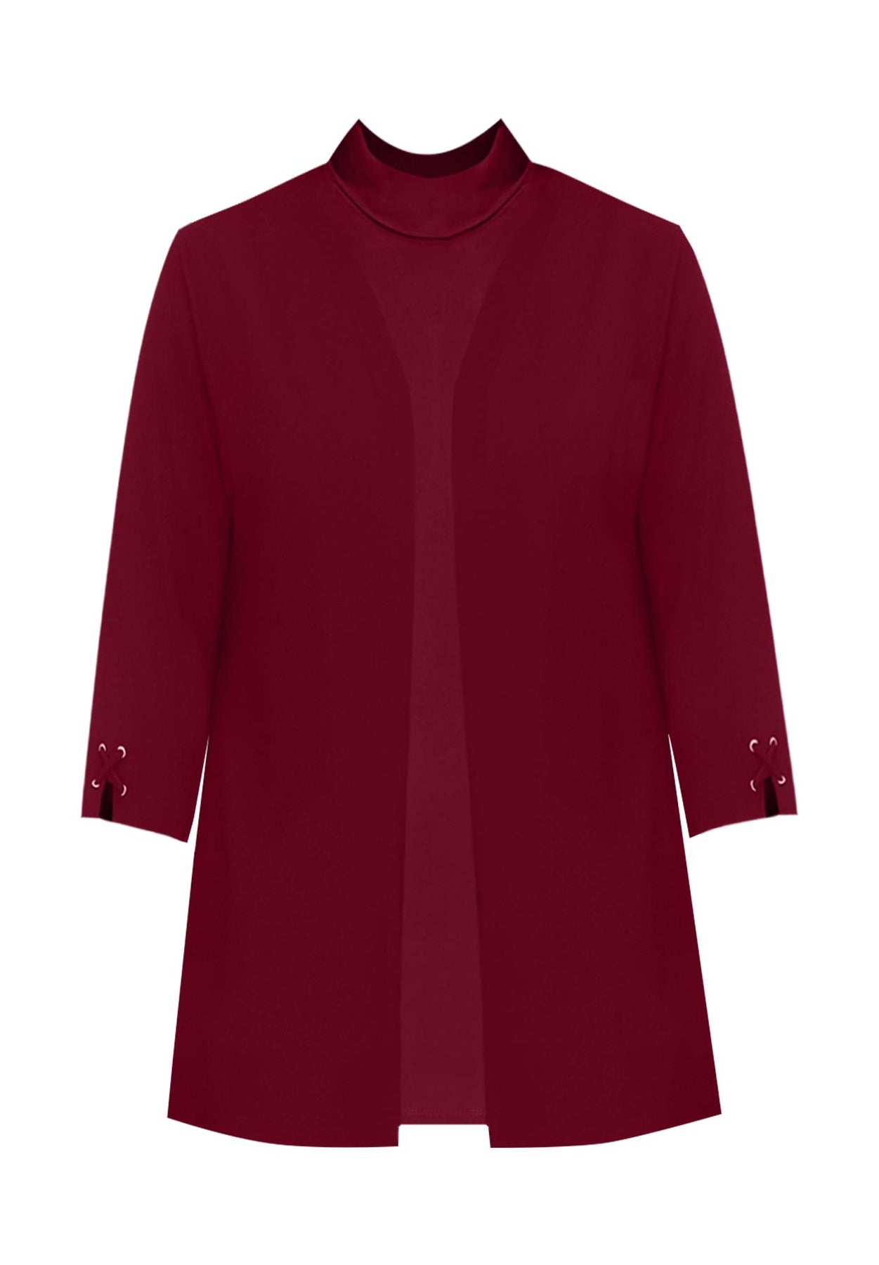 FIT: Relaxed and easy silhouette. Open front. 3/4 sleeves with button tab detail. Straight hem with side slits.