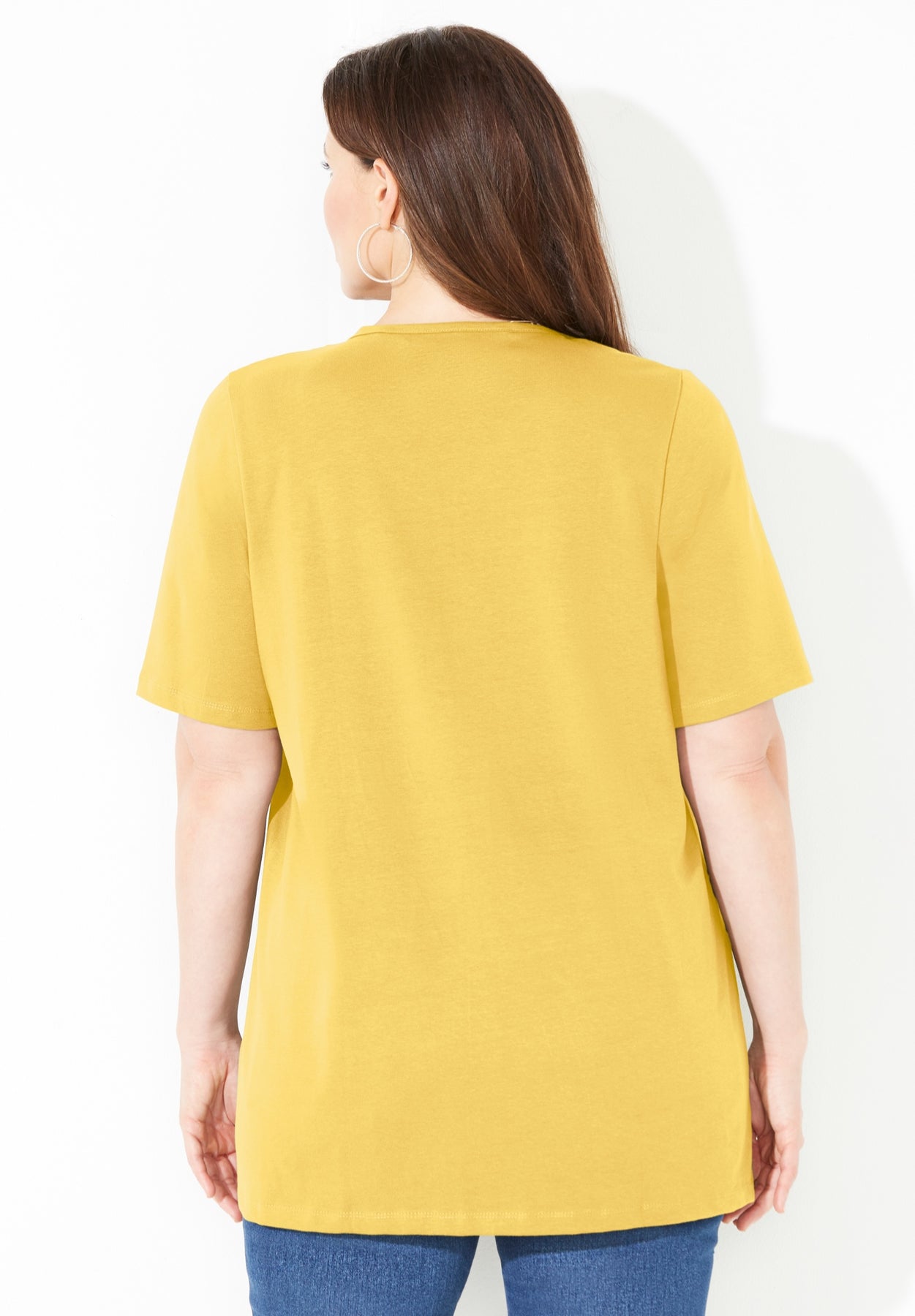 FIT: An easy, comfortable design that skims the body without clinging. V-neck. Short sleeves.