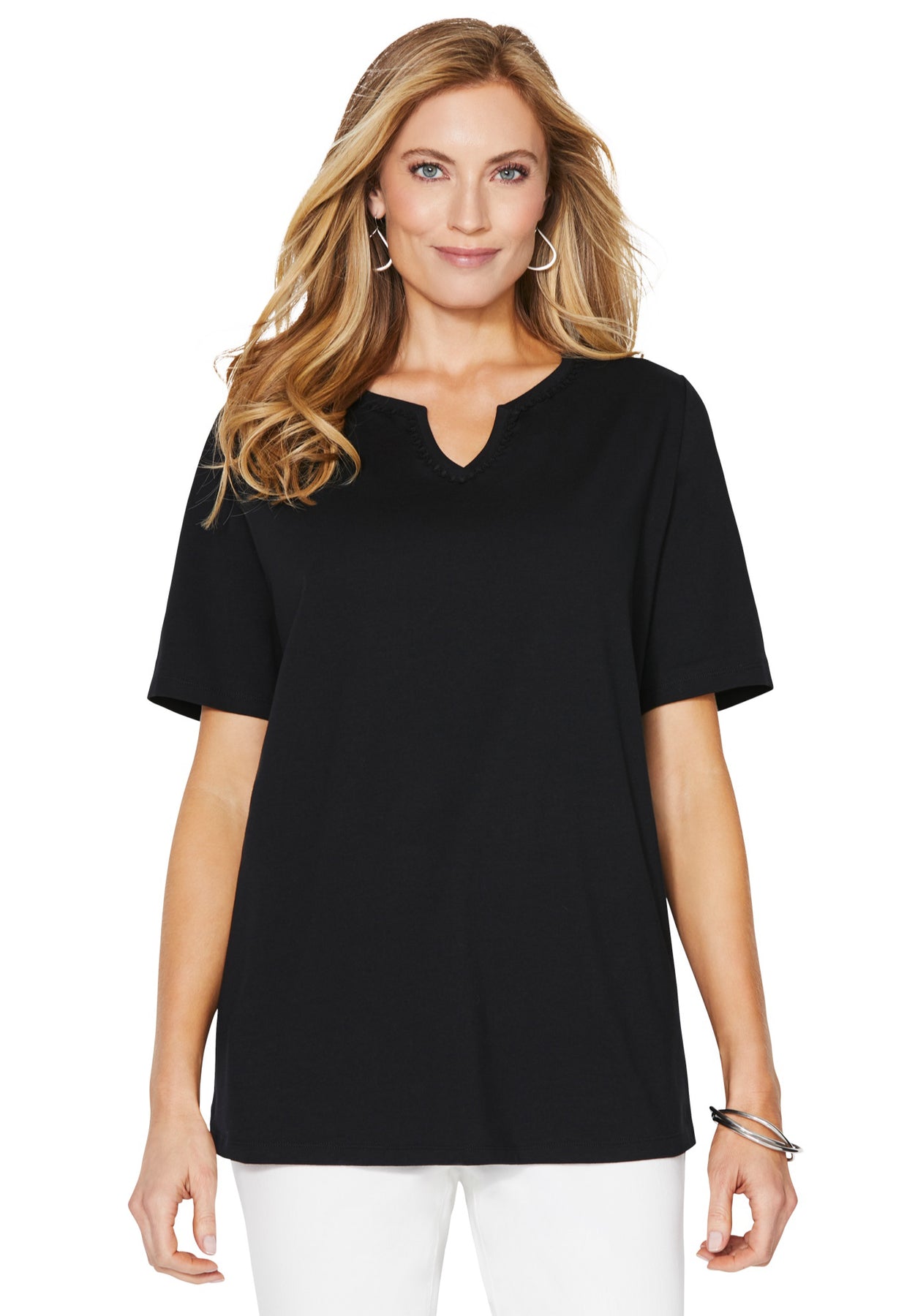Elevate your look without giving up ultimate comfort in this easy Suprema® tee featuring embroidered trim along the notch neck.