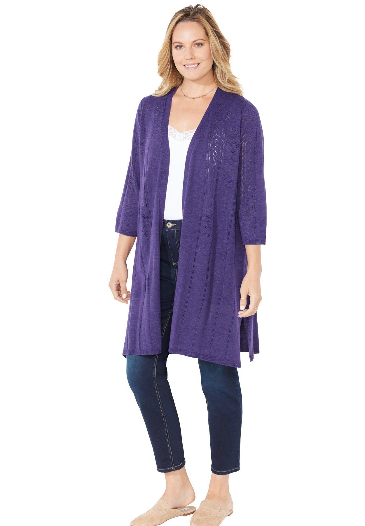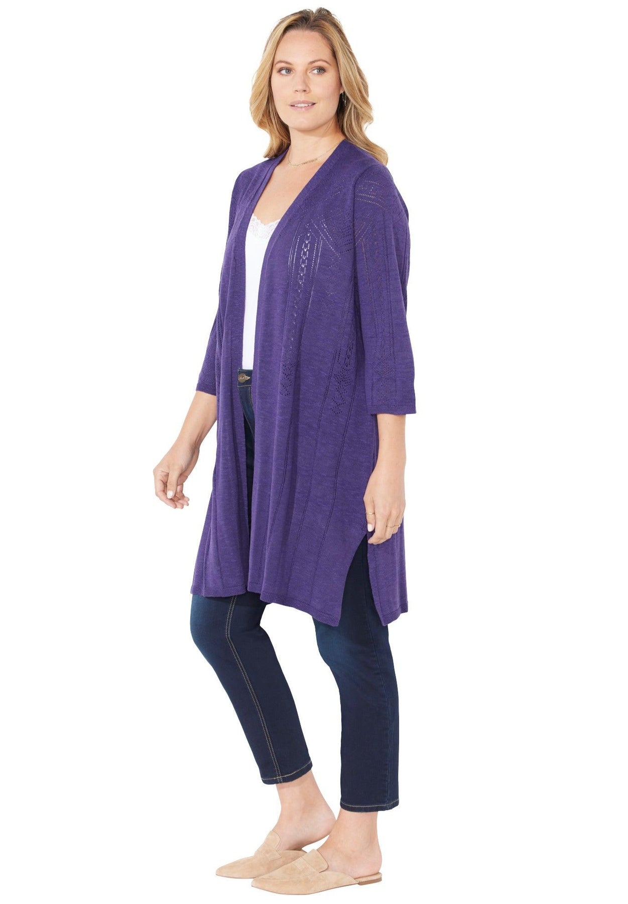 Long and lean with delicate pointelle stitching, this versatile cardigan is a wardrobe superhero. Soft. Lightweight. So flattering. We love it layered with with tunics and jeans, but you'll find endless ways to wear it.