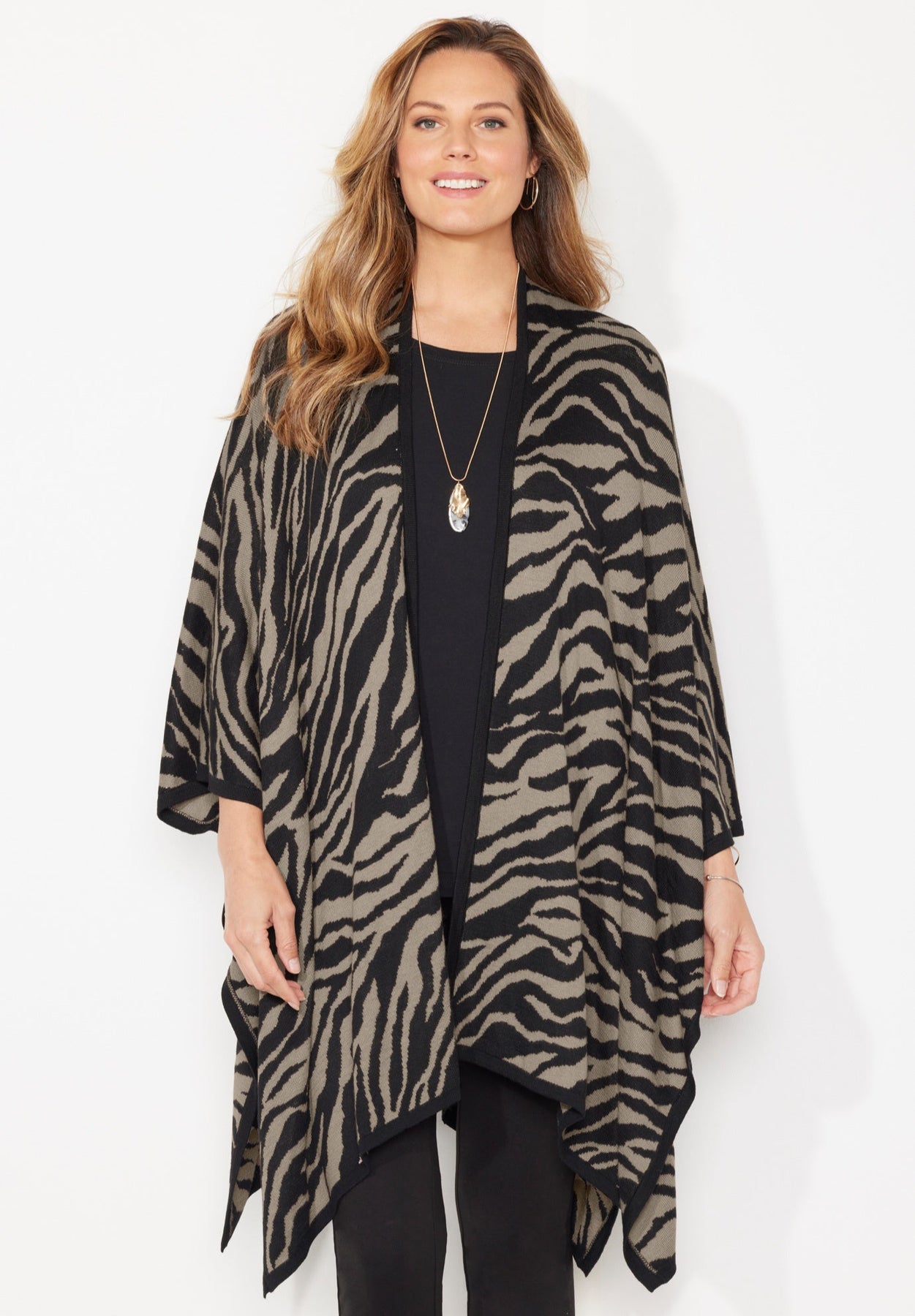The Liz&Me® Shawl wraps you in comfort like a warm hug. An open cascading draped front, three-quarter length sleeves and kimono-like silhouette also may have something to do with making you feel so good. Try pairing it with your favorite Liz&Me® top.