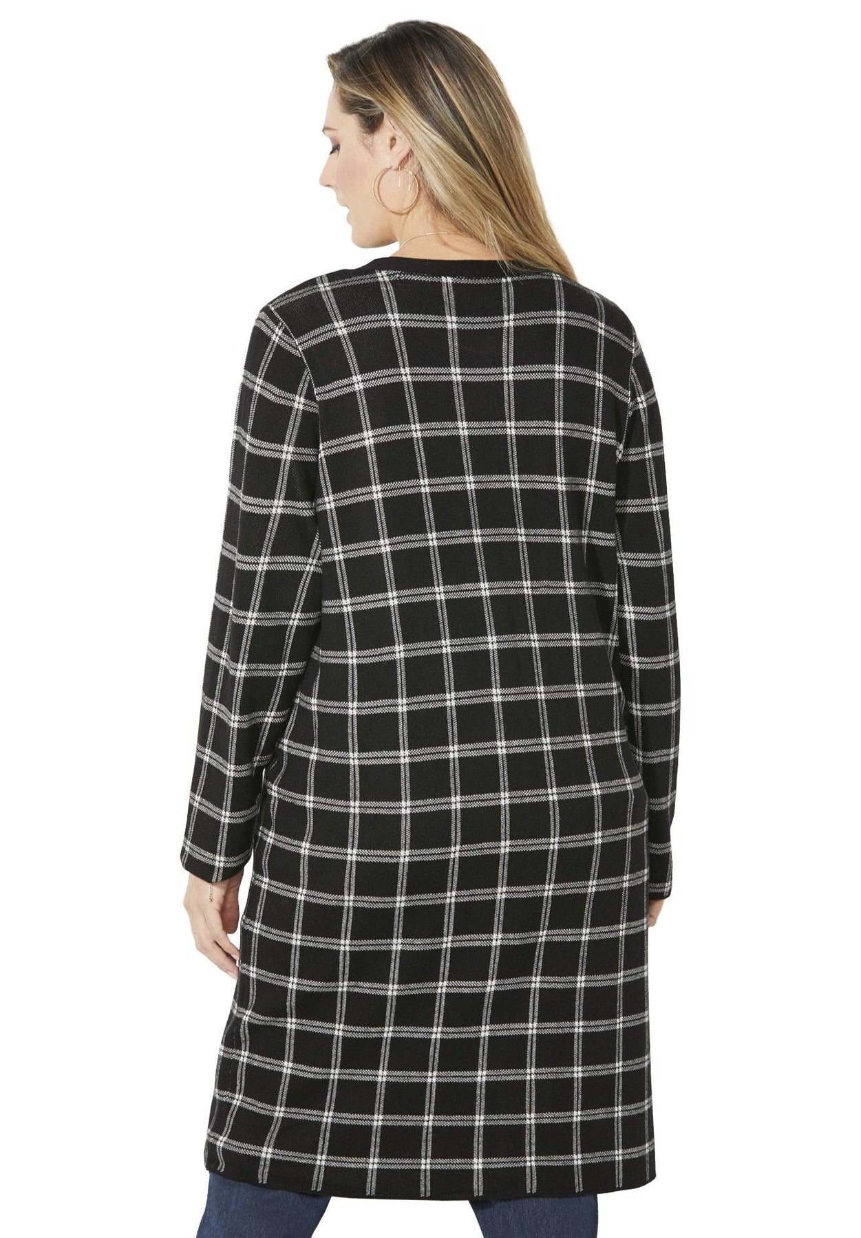 FIT: Relaxed silhouette in an above-the-knee length. Long sleeves. Open front. Two front pockets.