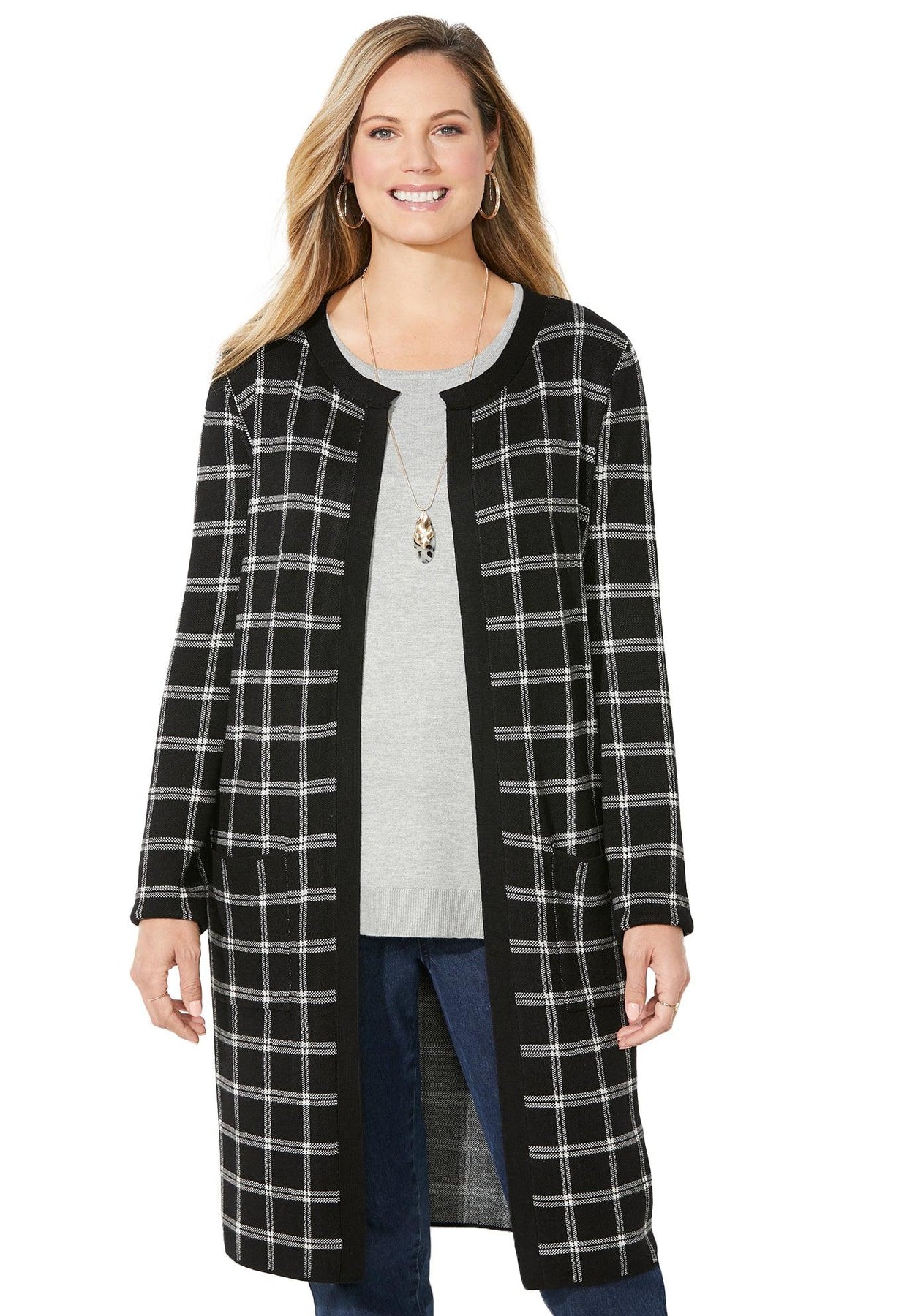 Designed with a beautifully textured jacquard weave, our Liz&Me® sweater cardigan is your go-to fashion topper instead of a coat. You'll love the classic patterning and two roomy front pockets. A natural with tees and jeans. Perfect with dressier looks, too.