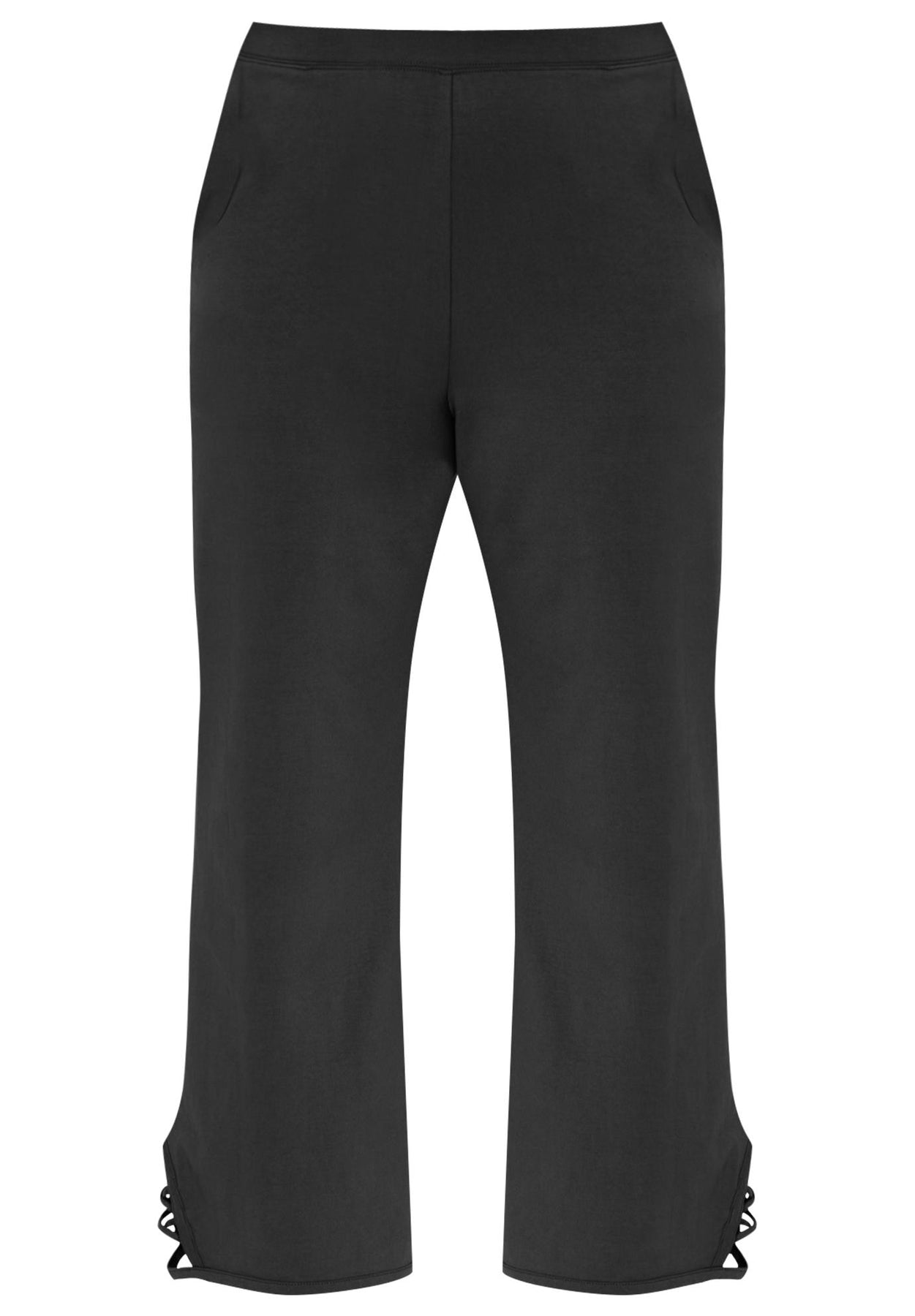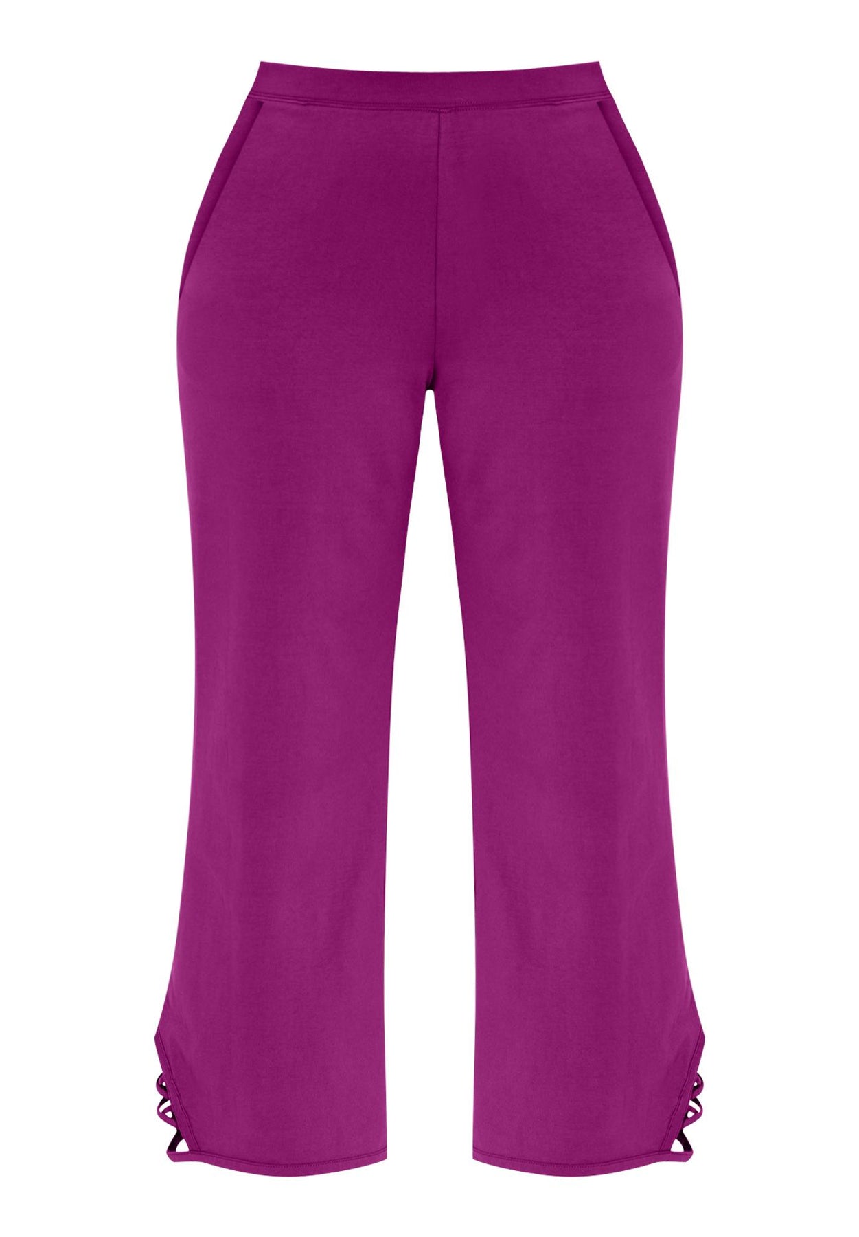 FIT: Relaxed and easy pull-on style, with a flat waistband and a wide, fluid leg, accented at the ankle with keyhole crisscross. Side slash pockets.