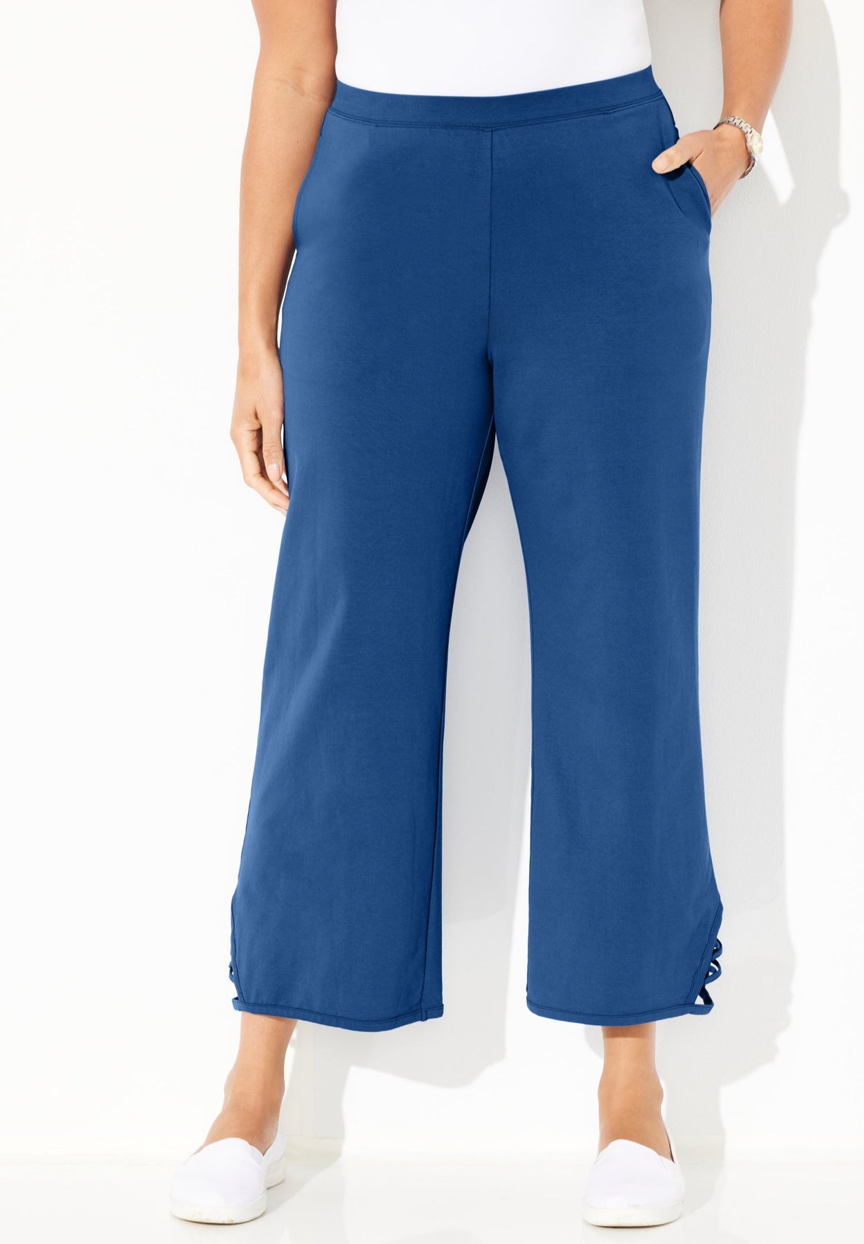 It's official: the wide leg ankle pant is a style must-have. Its relaxed silhouette is on everyone's fashion radar. Our Suprema® Wide Leg Ankle Pant is not only effortlessly classic, comfort's a top priority. Plus, notice the crisscross detail at the ankle that adds a special touch. For a complete, pulled together look, pair it with the Suprema® Crisscross Pullover Tee.