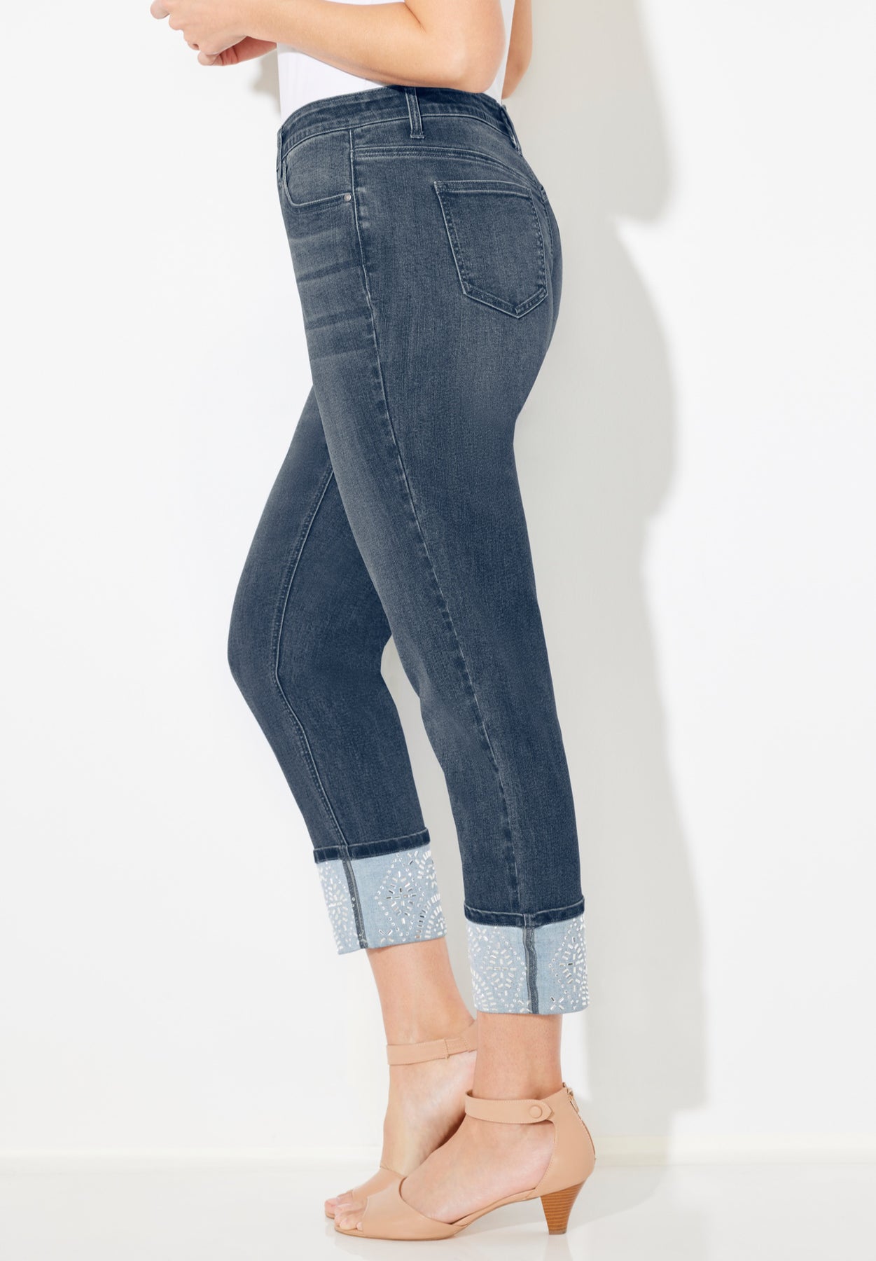 It's the fashion jean you've been asking for! Crafted from smooth stretch denim in cool washes, this jean really shines thanks to shimmering details at the cuffed ankle. Pair it with any of our fashion tops, sweaters and cardigans.