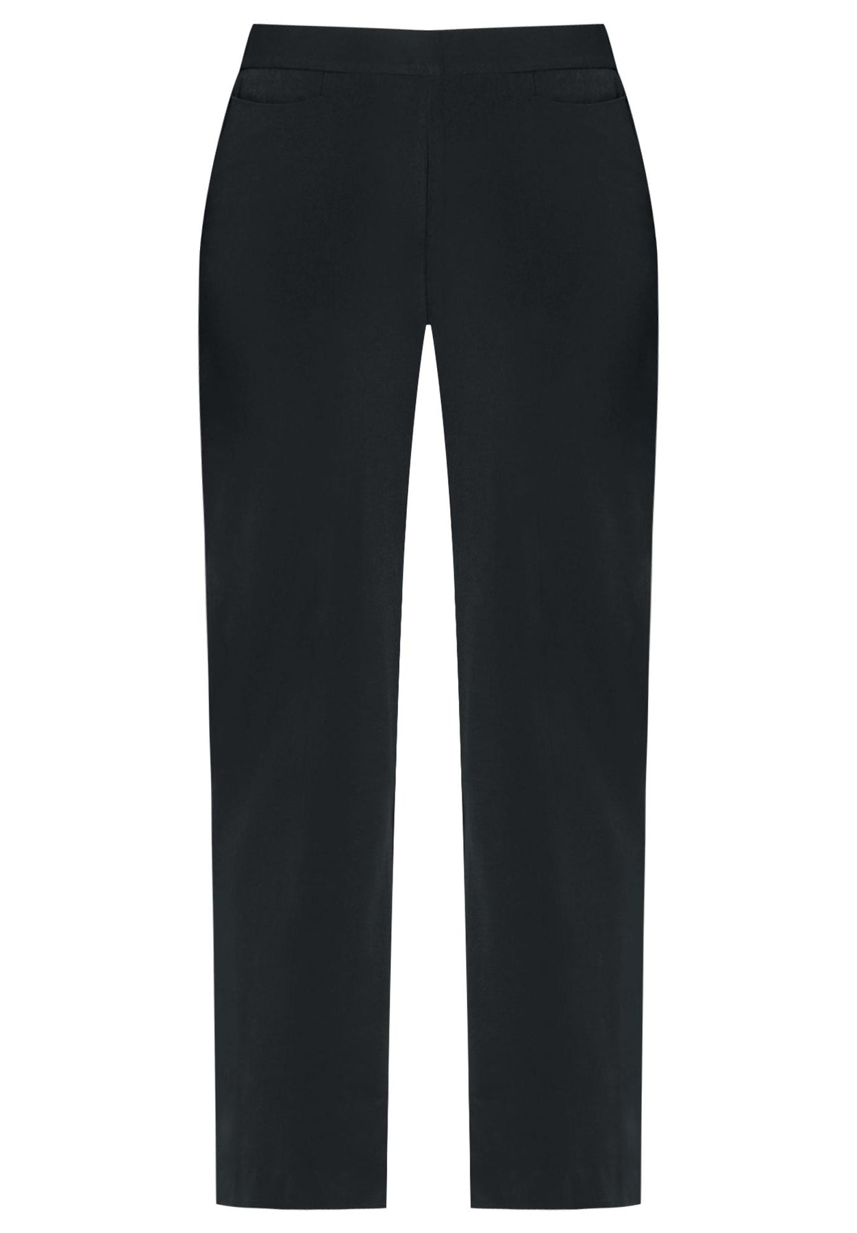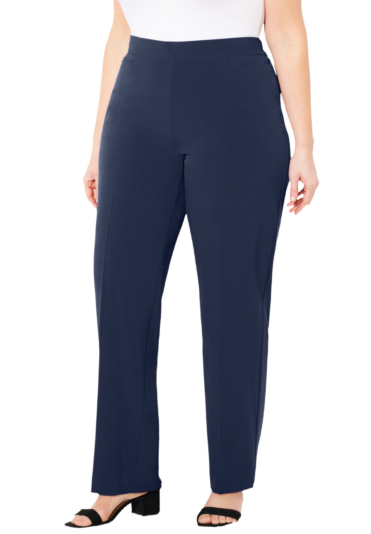 FIT: Like all Curvy fit bottoms, this pant is designed to flatter body shapes that are curviest at the hips. Pull-on style. Flat front with elastic back waistband. Two welt pockets. Straight leg.
