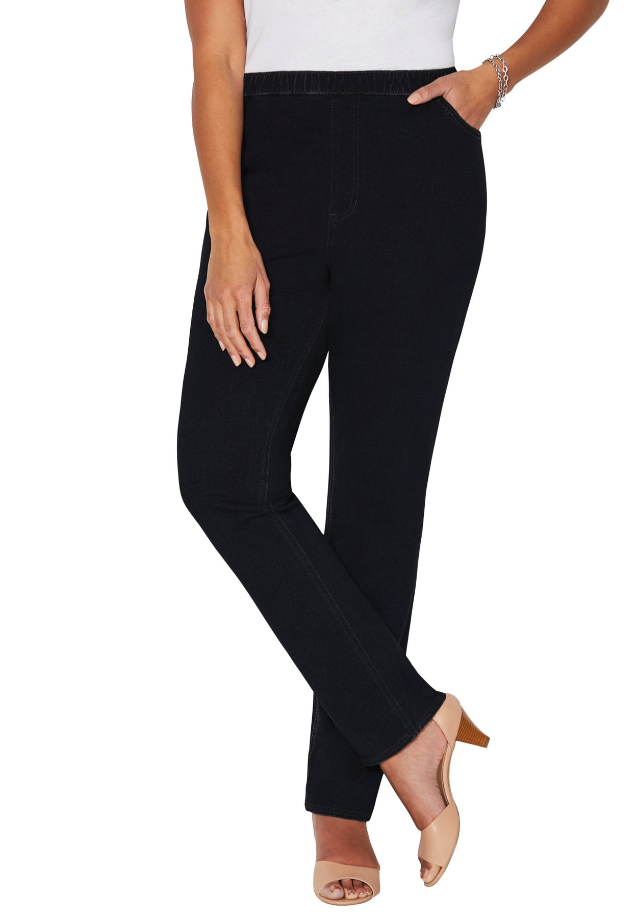 An essential jean for complete comfort ... now with functional front pockets! Our Knit Jean looks like a jean, but feels like a legging. Comfortable style features soft and stretchy french terry fabric for a smooth, slimming fit. Complete with an enclosed, all-around elastic waistband for easy pull-on styling. Back patch pockets. Slim leg.