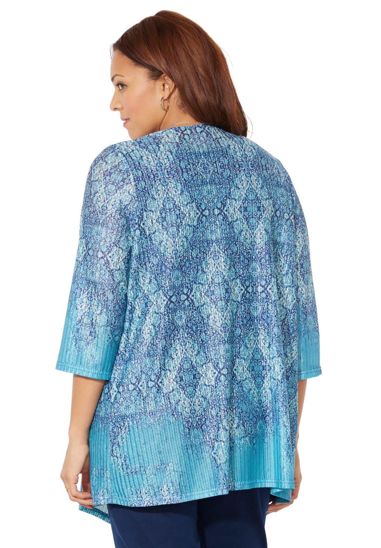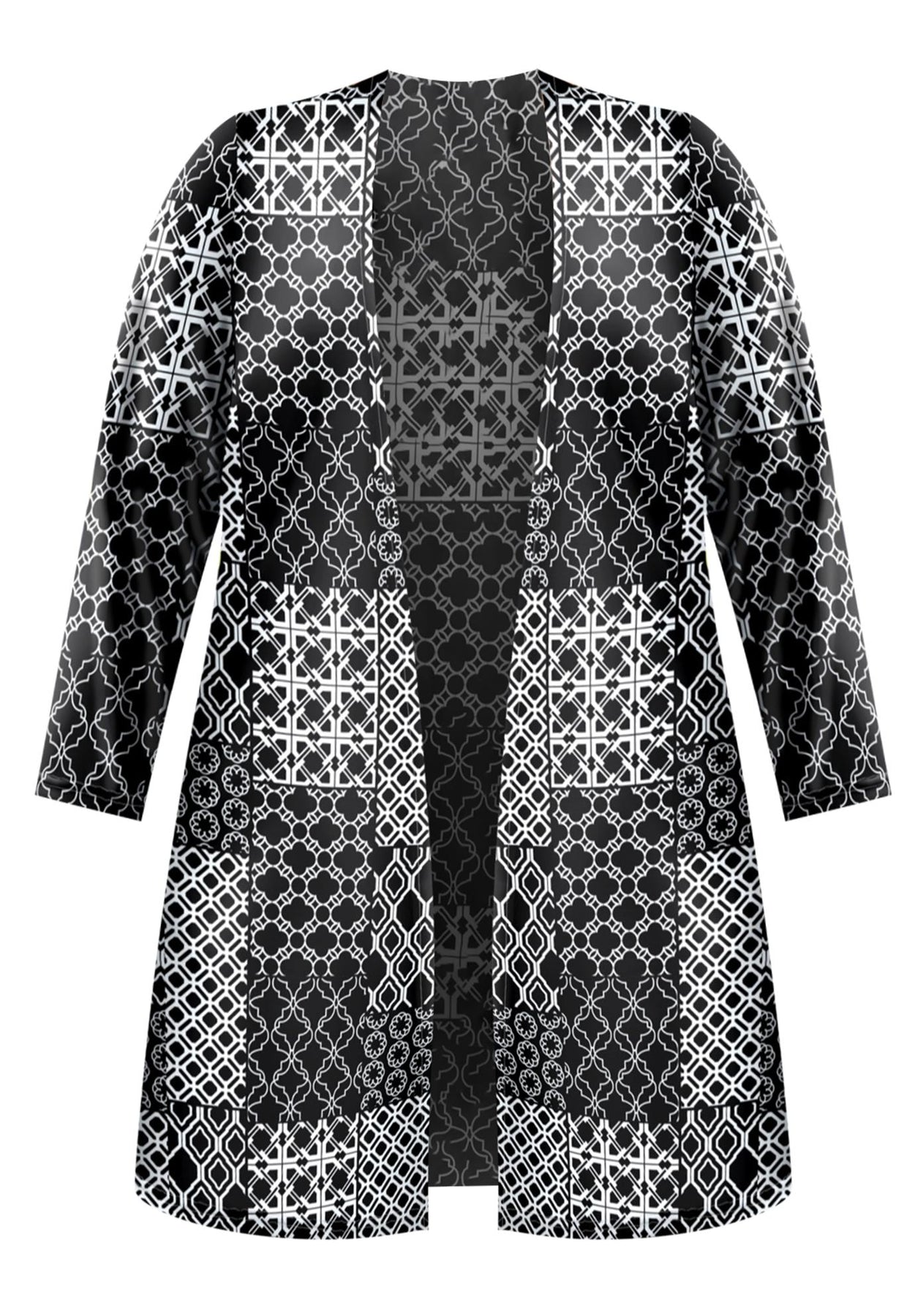 FIT: Relaxed and easy with open front, bust darts for shaping and 3/4 sleeves.