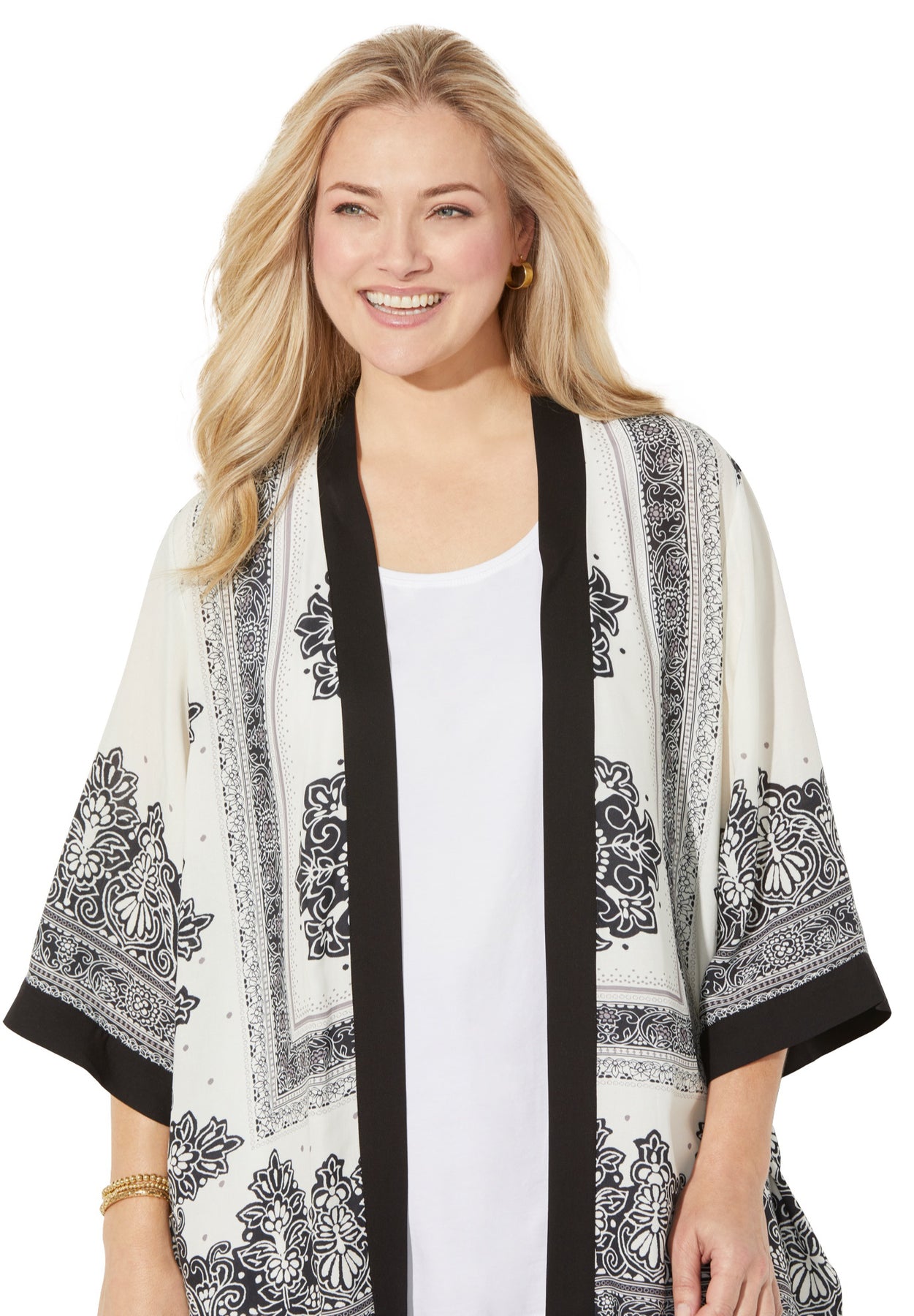 You'll love the way this long, lean kimono streamlines your shape. Silky-smooth to the touch with a drape that falls effortlessly to a duster length. Matches back perfectly to our Breezeway Georgette High-Low Tunic Tank