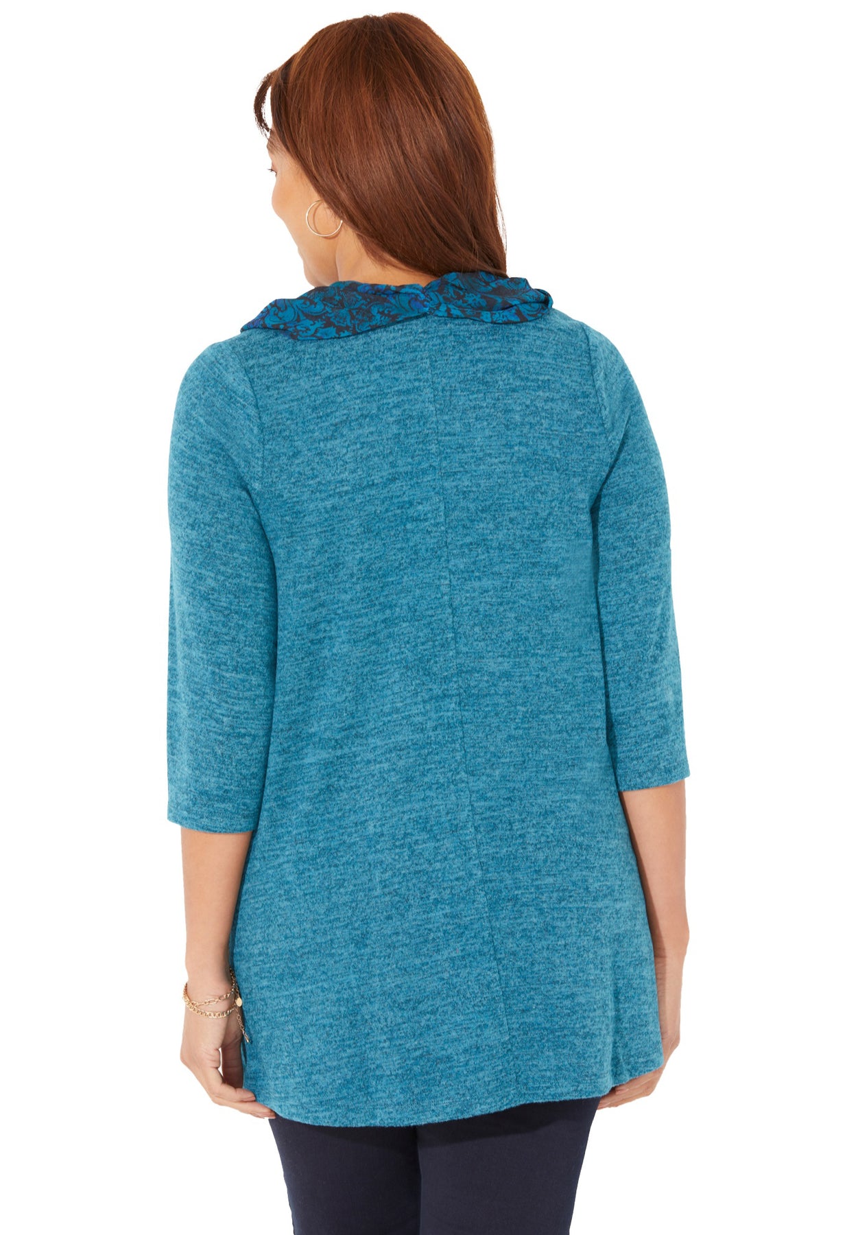 Soft, fluid, and so easy to wear, this super-soft marled tunic has a detachable fringe scarf, which fastens in the back via three handy buttons. An updated fashion favorite from our Duet Collection. Even better, it's Impossibly Soft.