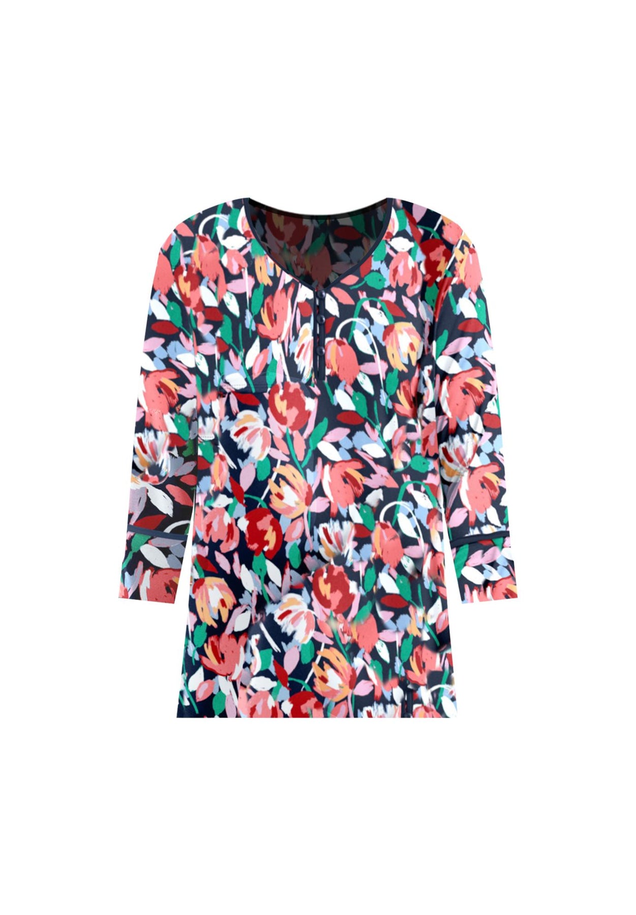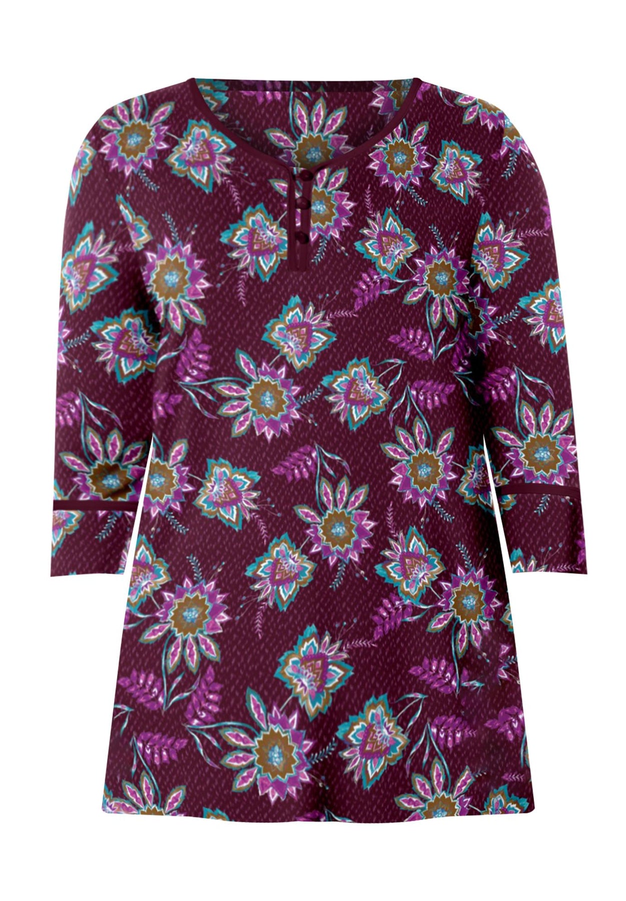 Our Liz&Me™ Henley Top is relaxed and stretchy with elevated details like dome shank buttons and contrast chiffon trim so you look perfectly put-together with one easy piece. Wear with Liz&Me® chinos or trousers for an effortlessly timeless look.