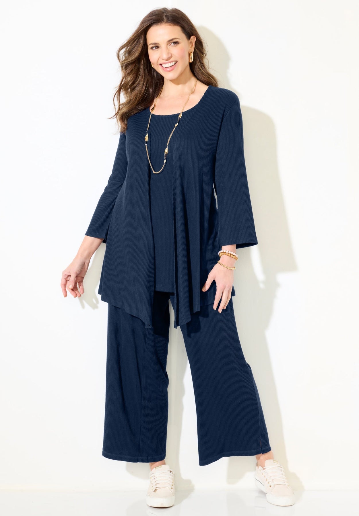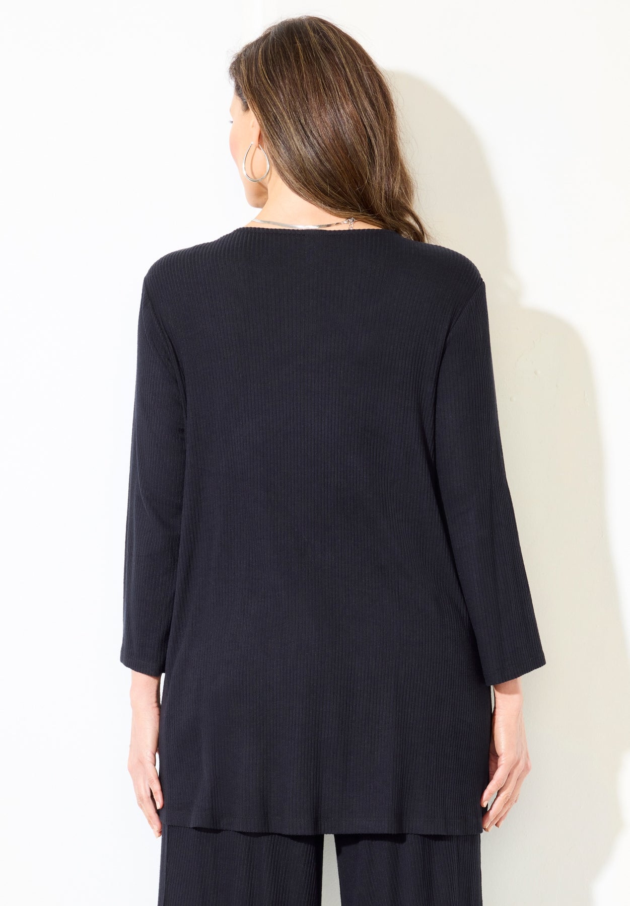 Part of our AnyWear exclusive collection of travel-ready separates made to mix, match and make life easy. Simplify your style with this topper and tank combo that gives you an effortlessly layered look in an instant. You’ll get the best of both stylish worlds, a beautifully draped topper with an open, cascading front and a sleek, built-in tank. It has three-quarter length sleeves and is crafted with our easy-wearing ultra-soft Hacci knit fabric that is virtually wrinkle-free. It’s also ribbed for a subtle dose of texture.