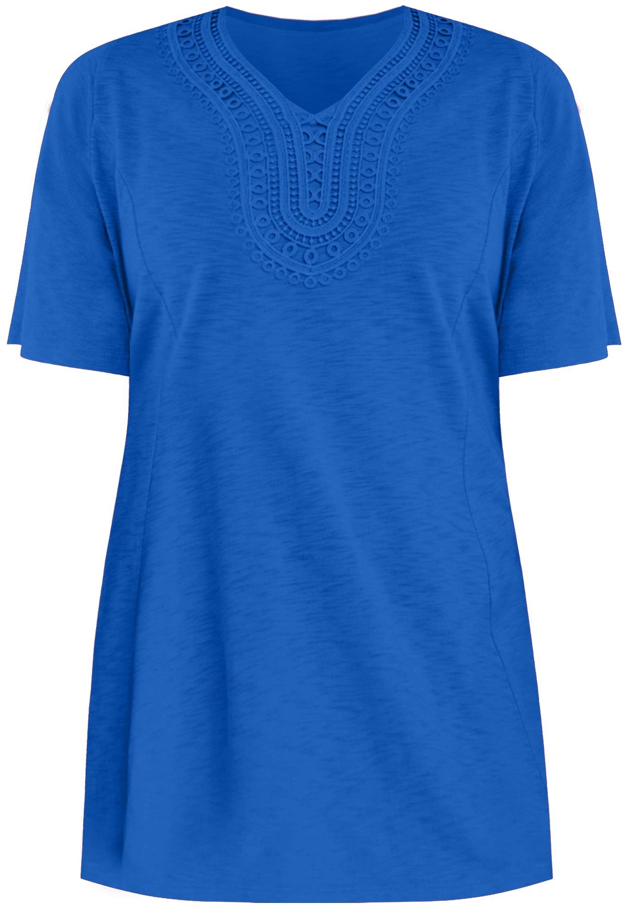 A crochet applique along the neckline of this graceful top lends elegant style perfect for pairing back to all your favorite skirts and pants or layering under kimonos and cascades for endless outfits made to take you anywhere.
