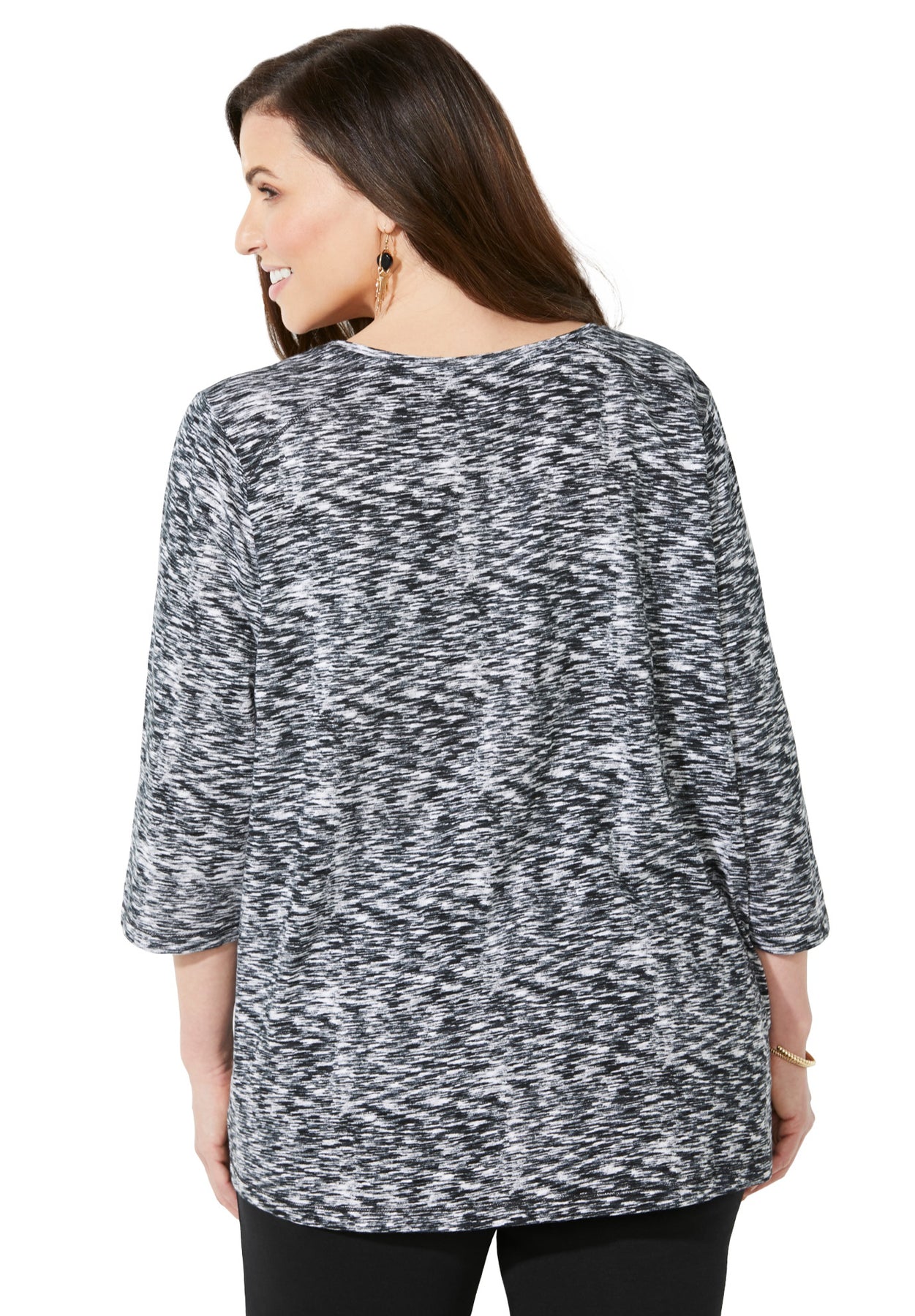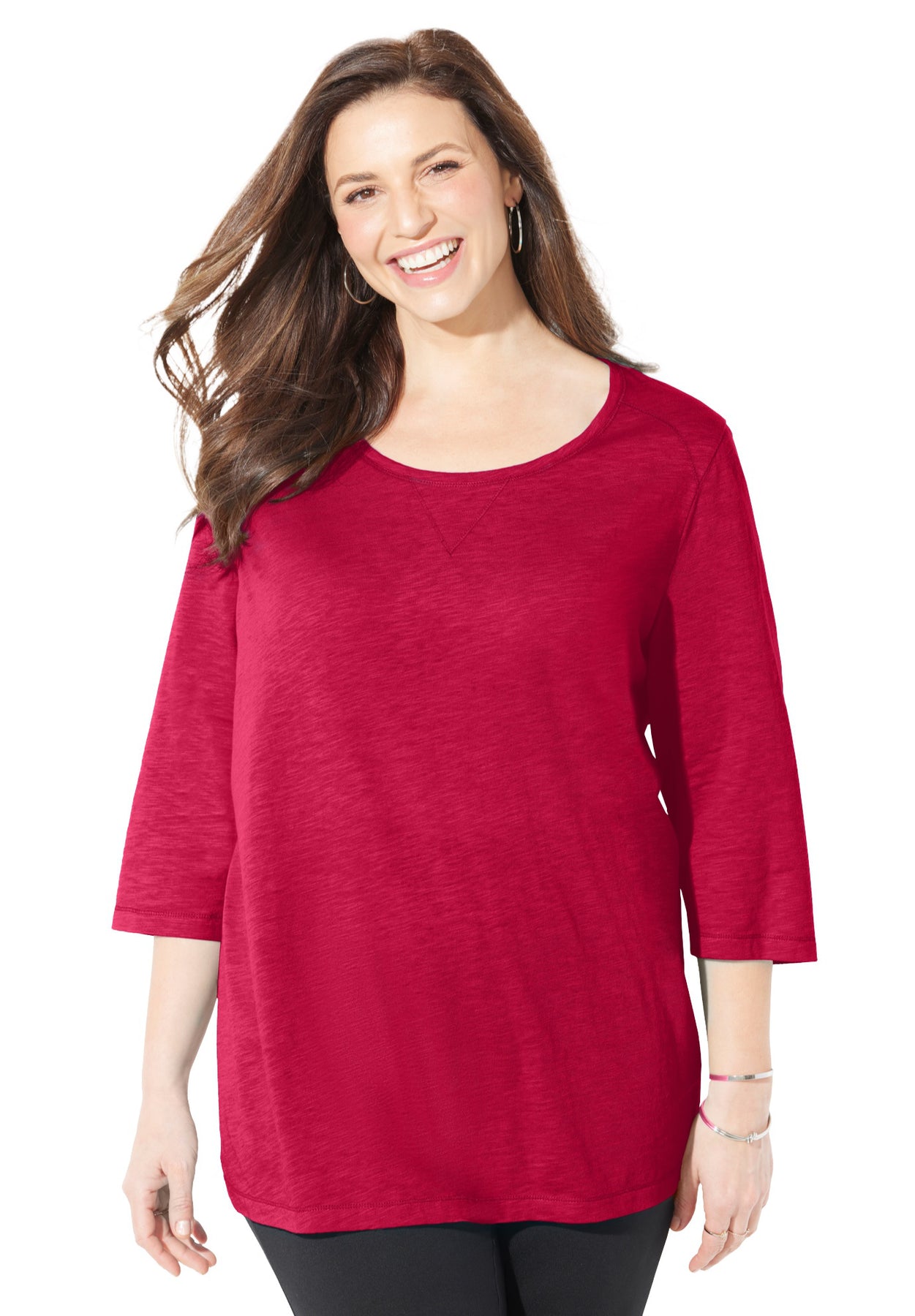 FIT: Relaxed, easy silhouette. Scoop neckline. 3/4 sleeves.