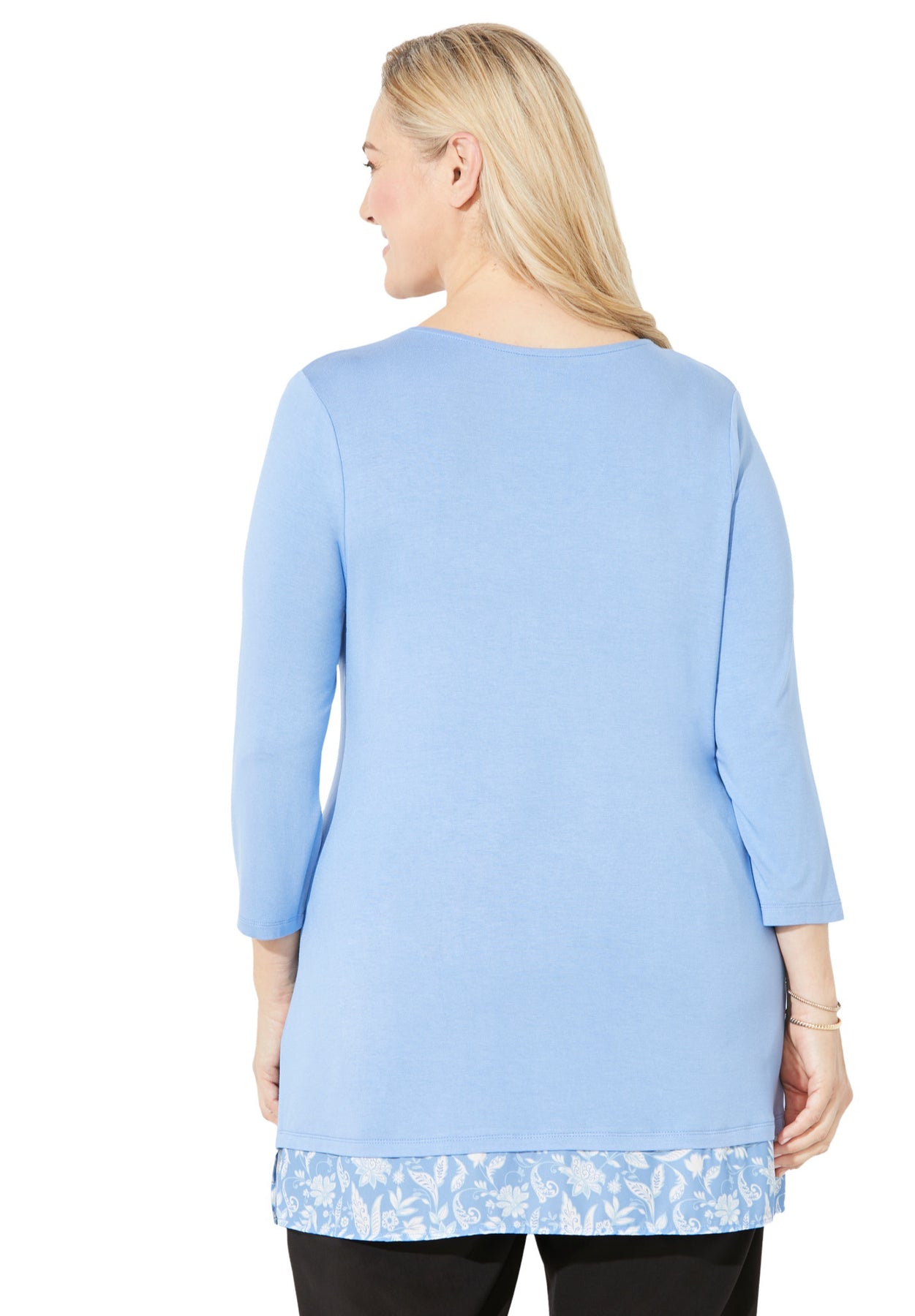 Get a classic layered look without the bulk. The Liz&Me® Duet Top is relaxed and stretchy with contrast chiffon trim at the neckline and hem so you look perfectly put-together with one easy piece. Wear with Liz&Me® chinos or trousers for an effortlessly timeless look.