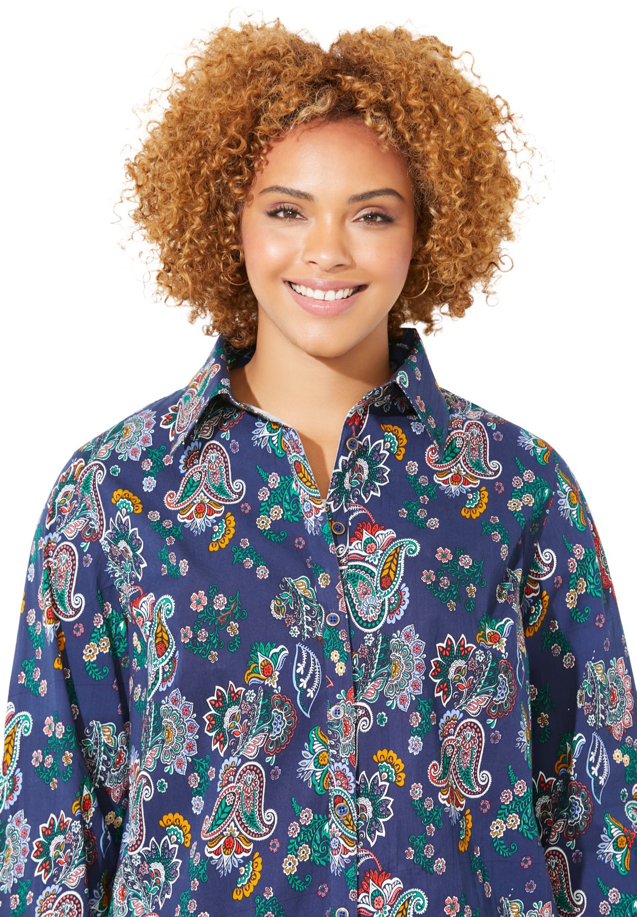 Our polished Liz&Me® poplin shirt is versatile enough to wear with anything from skirts to jeans to trousers. We've updated this classic buttonfront style with goldtone-rimmed enamel-dyed buttons for an even more refined look.