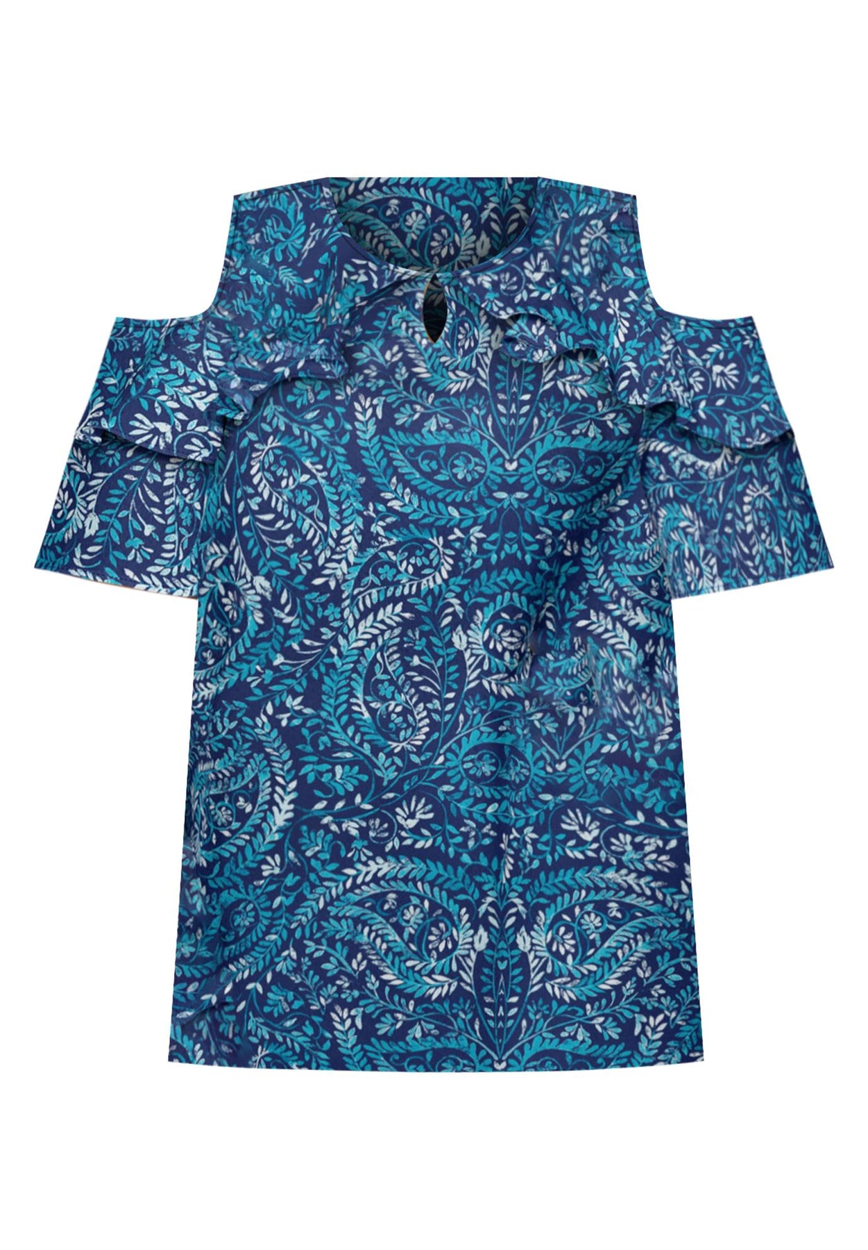 From the stunning floral print and feminine ruffle to the cold-shoulder design and cutout along the neckline, this floral print top combines so many pretty little details -- you'll wear it on repeat all season.