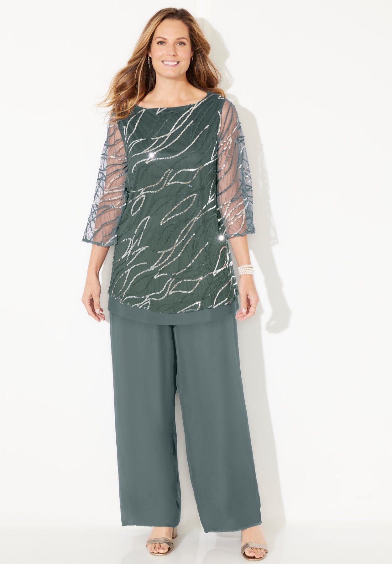 Need something fancy to wear? No need to fuss, our Sequin Chiffon Duet Blouse makes dressing for a special occasion simple. It shimmers with the perfect amount of swank. Try wearing it with our Social Separates Cocktail Pant and see what a posh-looking pair the two make. Each piece is uniquely beautiful and slight variations may occur due to our special novelty fabrics and dyeing process.