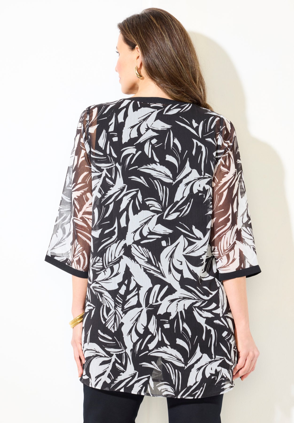 Meet the blouse with a style that bridges the gap between work and play. Styled with a partial buttonfront Y-neckline, three-quarter length sleeves and contrast binding detail to accentuate its shape. The silhouette’s soft flowy drape has an ease just at home at a business meeting as it is at an after-work cocktail party or a weekend dinner with family and friends.