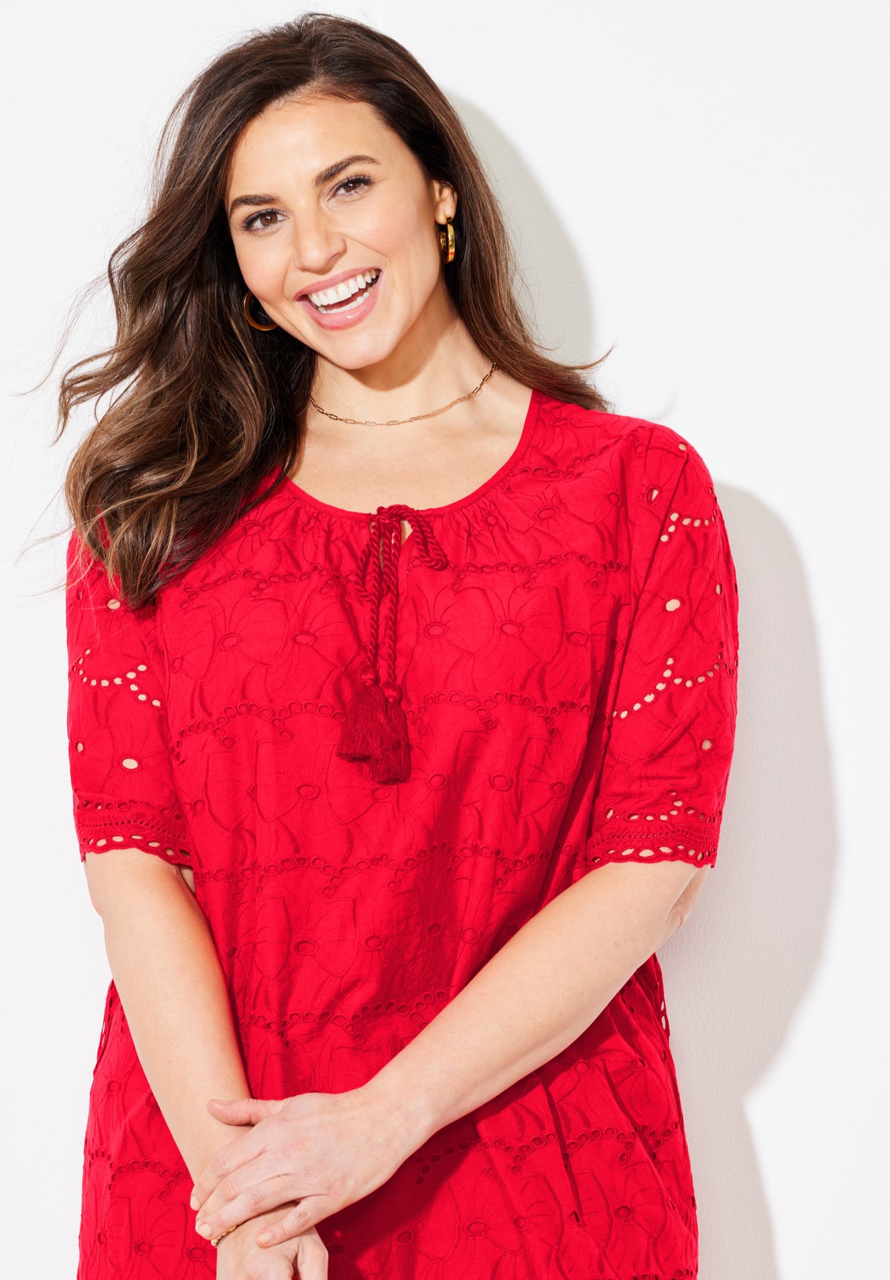 FABRIC: Lightweight cotton with detailed eyelet stitching.