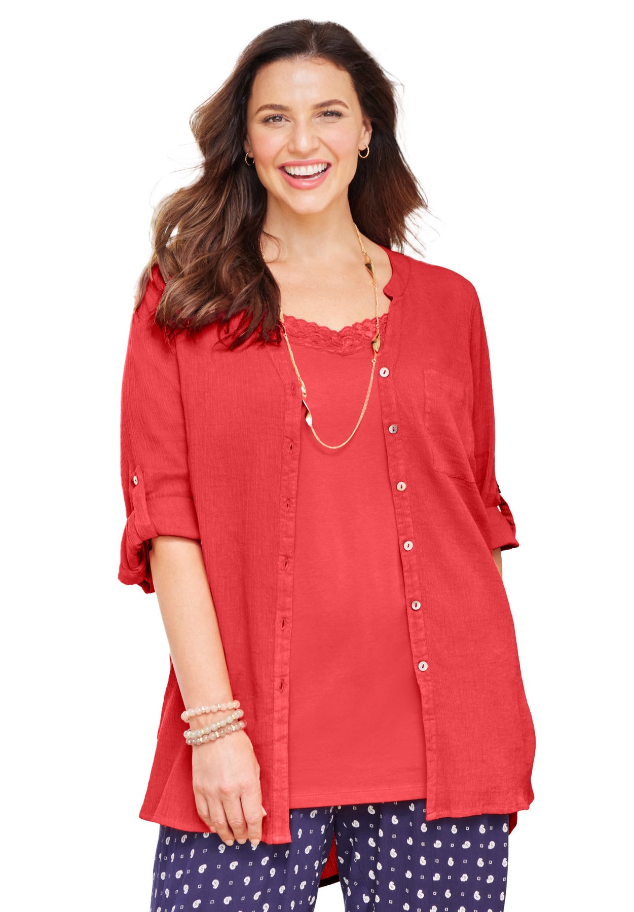 A beautiful way to change up your look. Crafted from breezy, textured gauze, this tunic has a way of elevating any pant you pair it with. Wear it anytime you want a comfy style that's a cut above casual.
