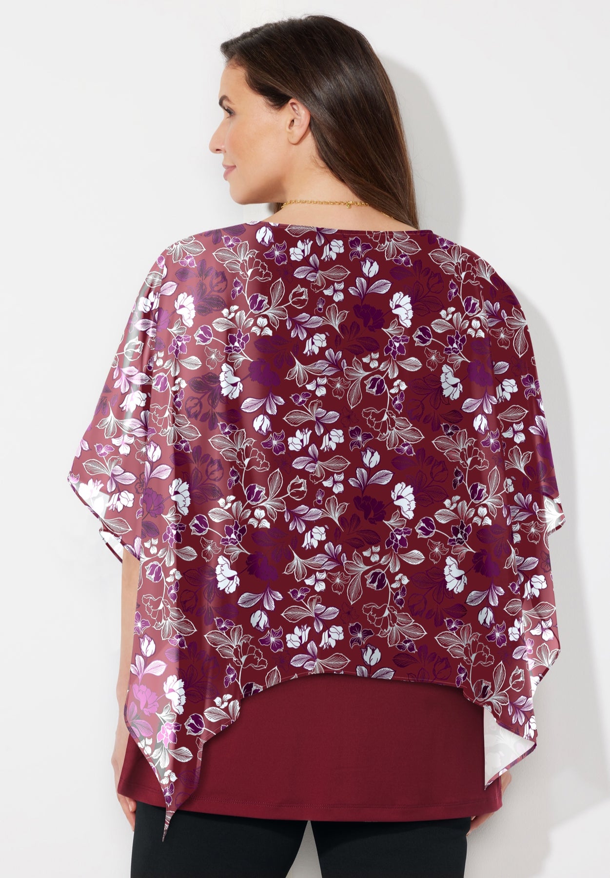 Get the layered look minus the bulk. Designed with a chiffon layer that gracefully drapes over an attached tank. It features a dolman sleeve that adds the perfect stylish touch. A stunning combo worn with our Sateen Stretch Pant or Knit Jean.