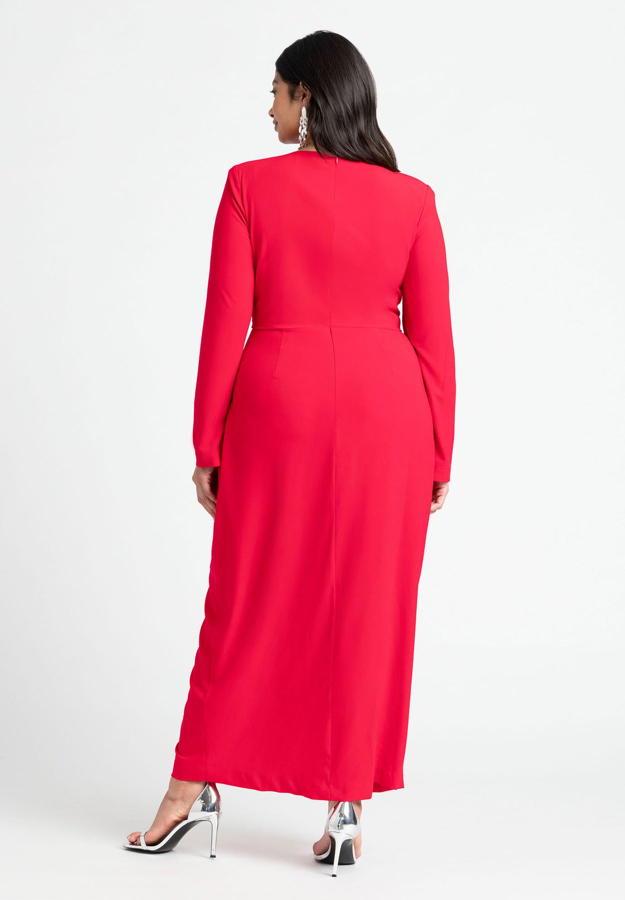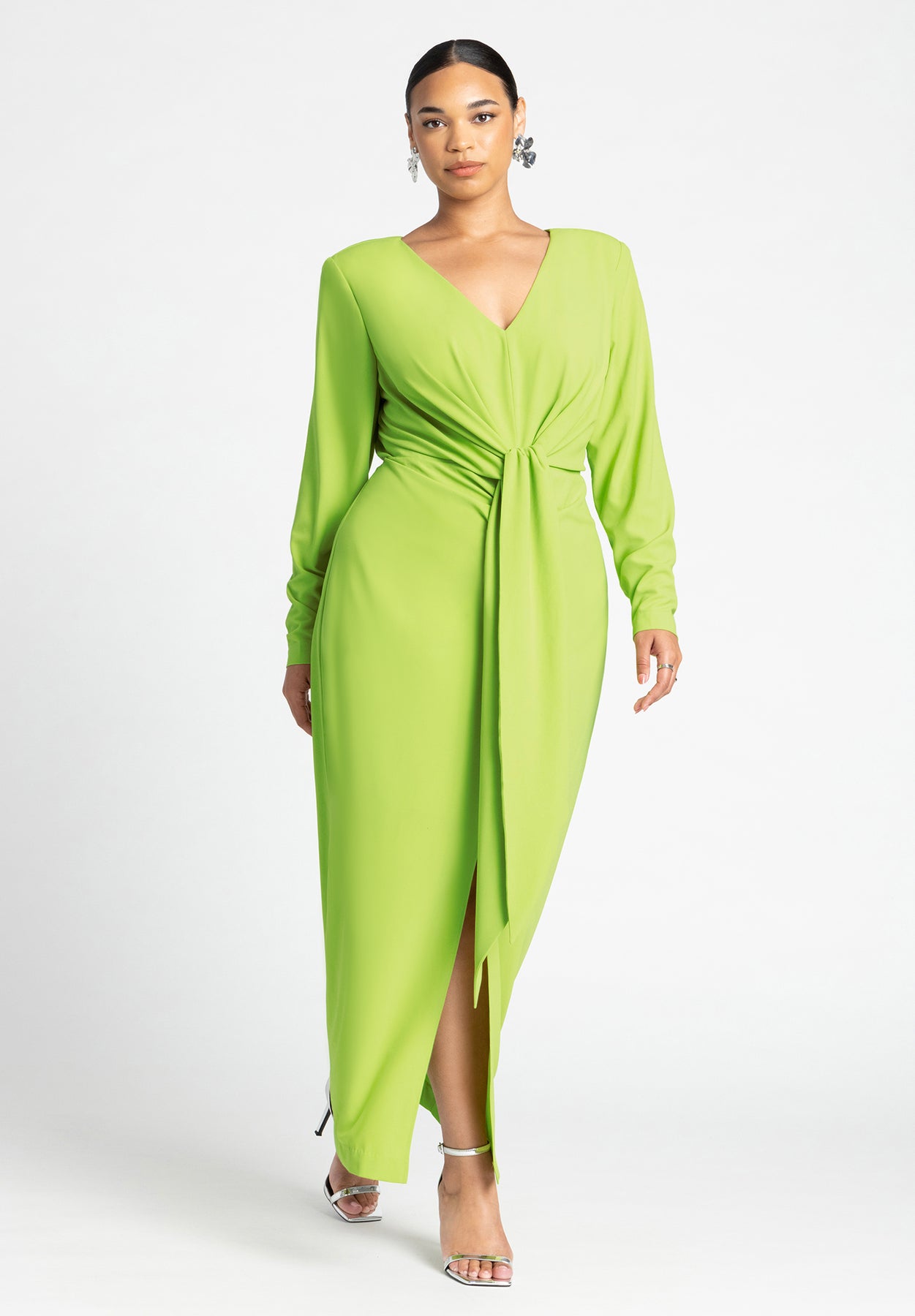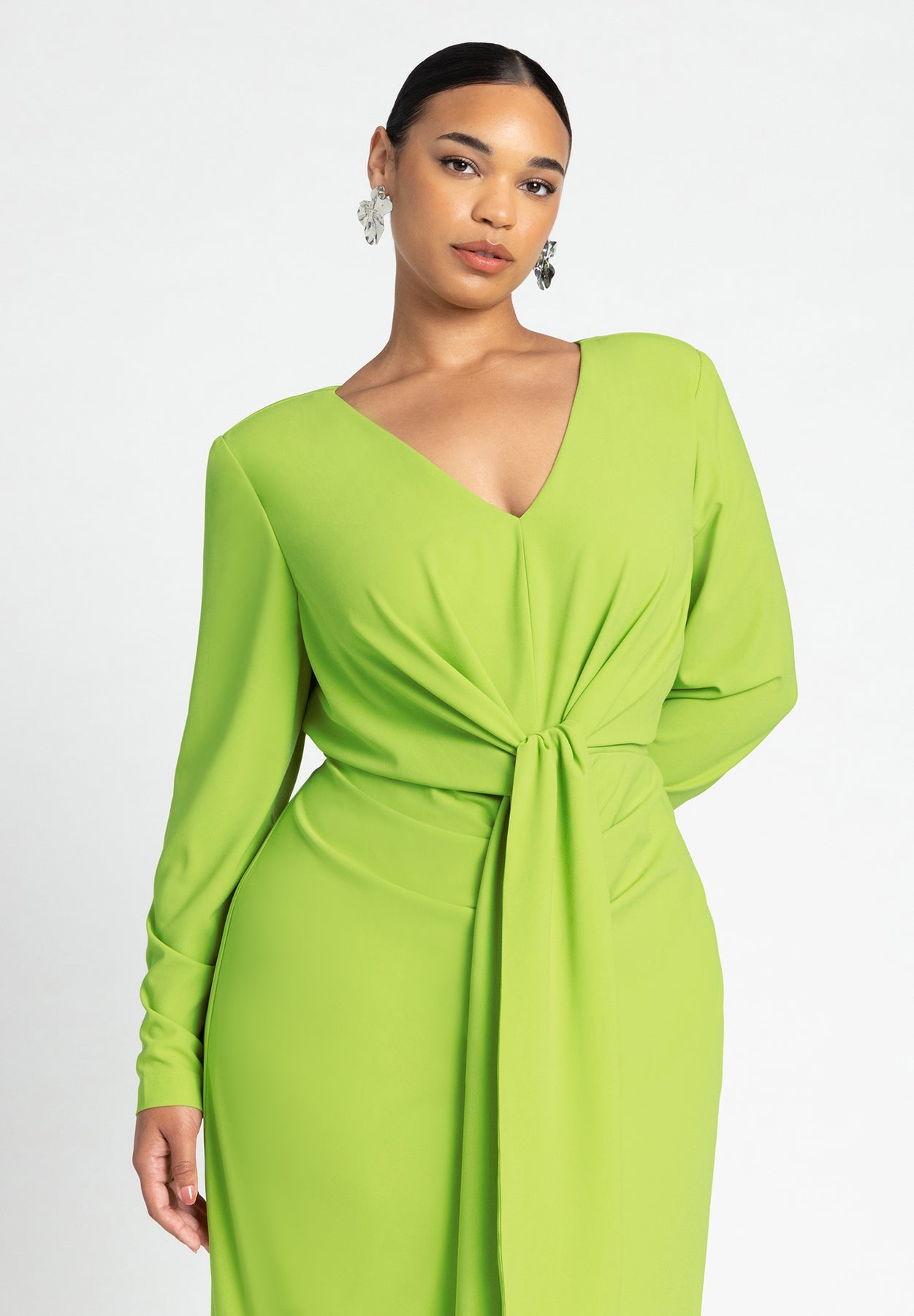 Shirred Strong Shoulder Tie Detail Dress | ELOQUII