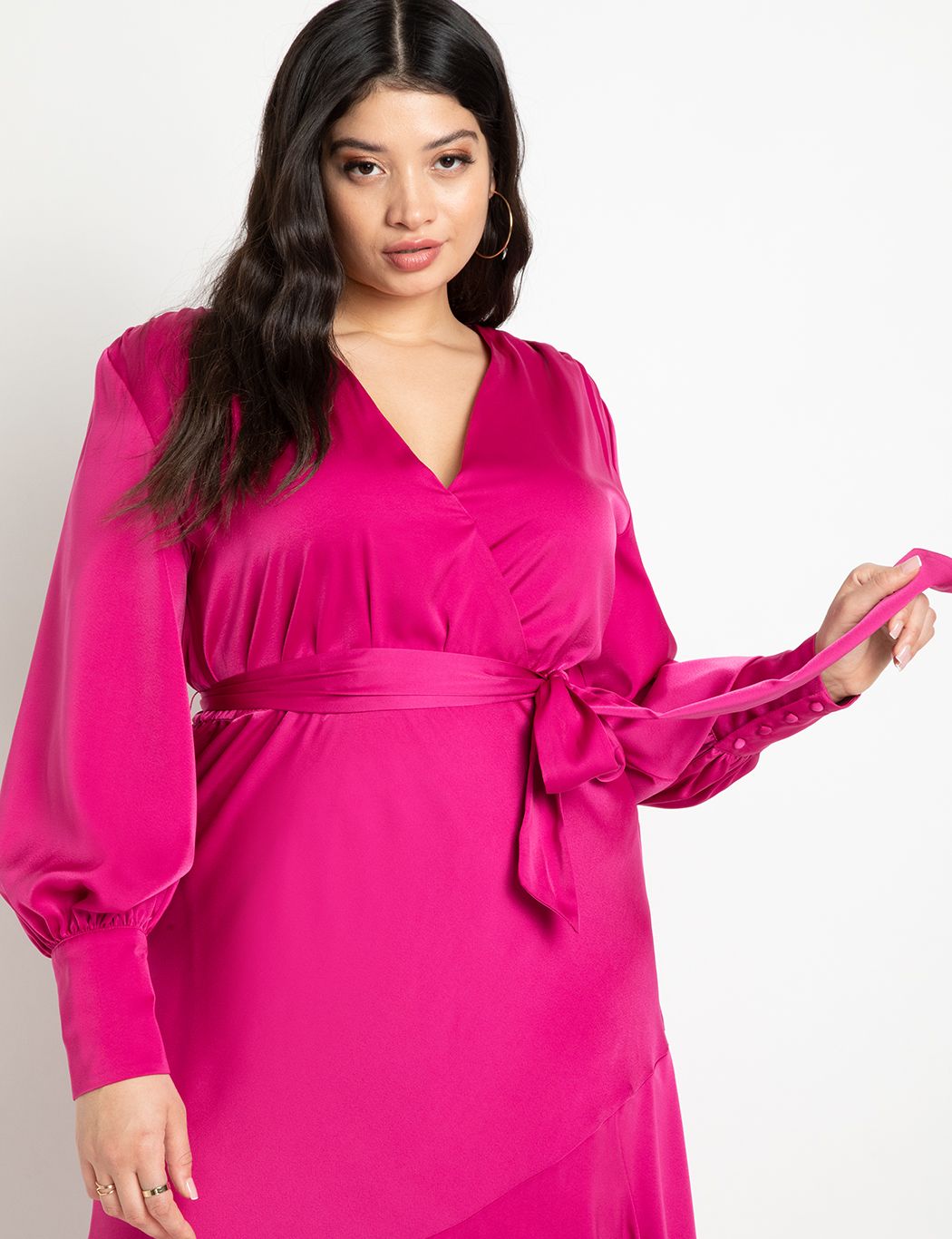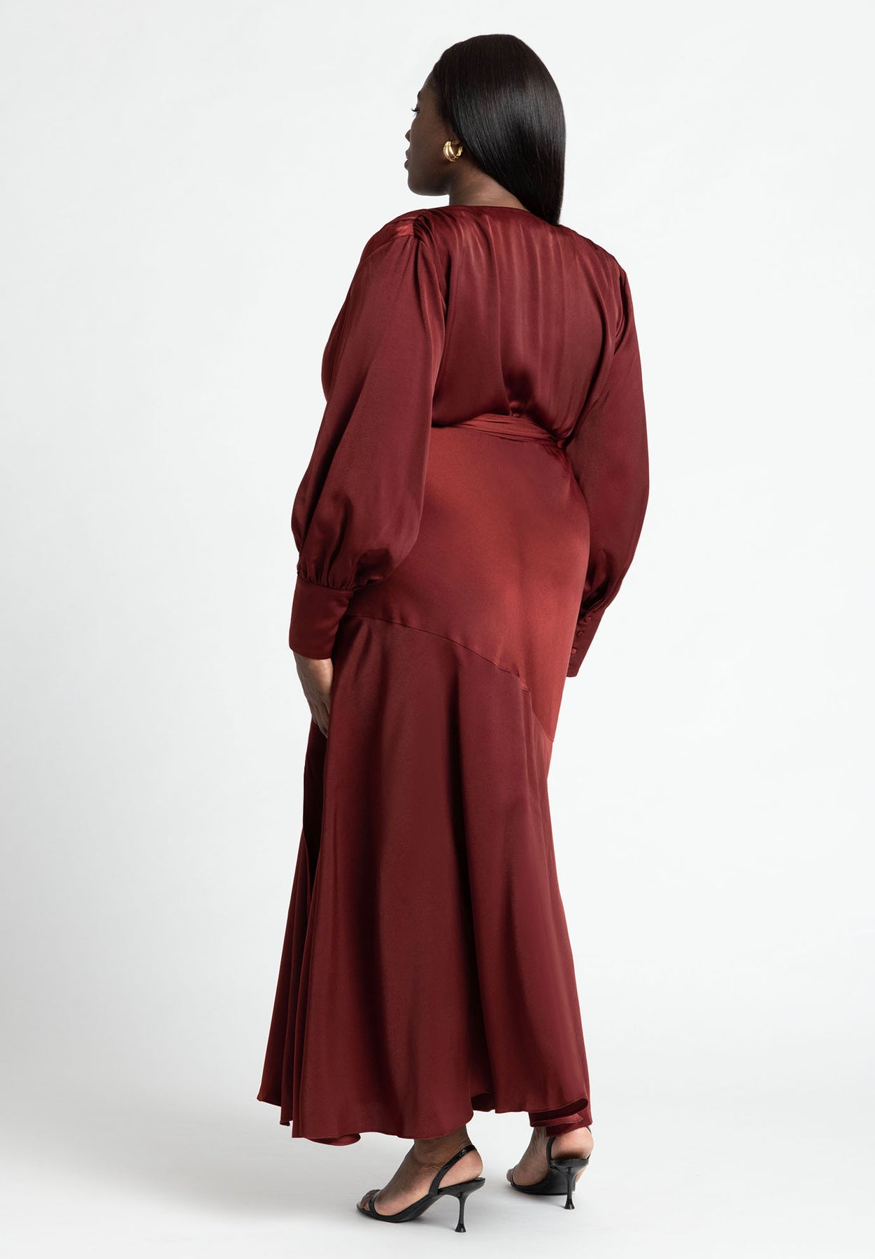 Framed especially by its bold shoulders & belted waist, this non-stretch satin maxi dress comes finished with a flounced hem and thigh-baring slit. From cocktail hour to moonlit soirées, this maxi was made to command a room.