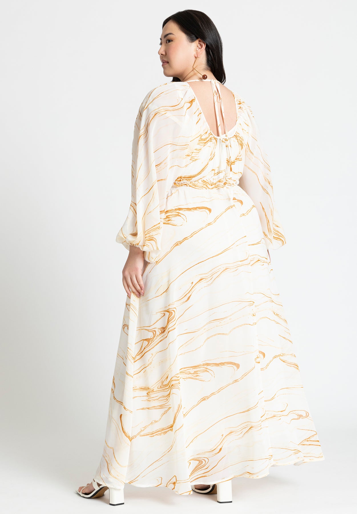 Chiffon Balloon Sleeve Maxi Dress | ELOQUII