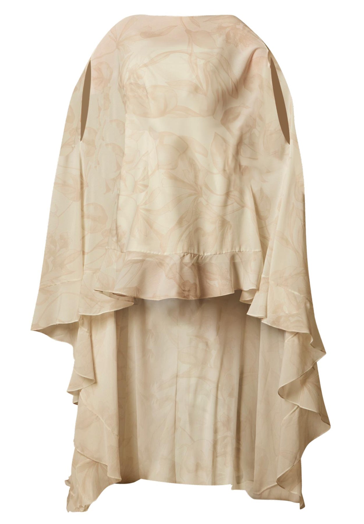 • Cami lining with adjustable straps 4" ruffle around bottom edge of cape