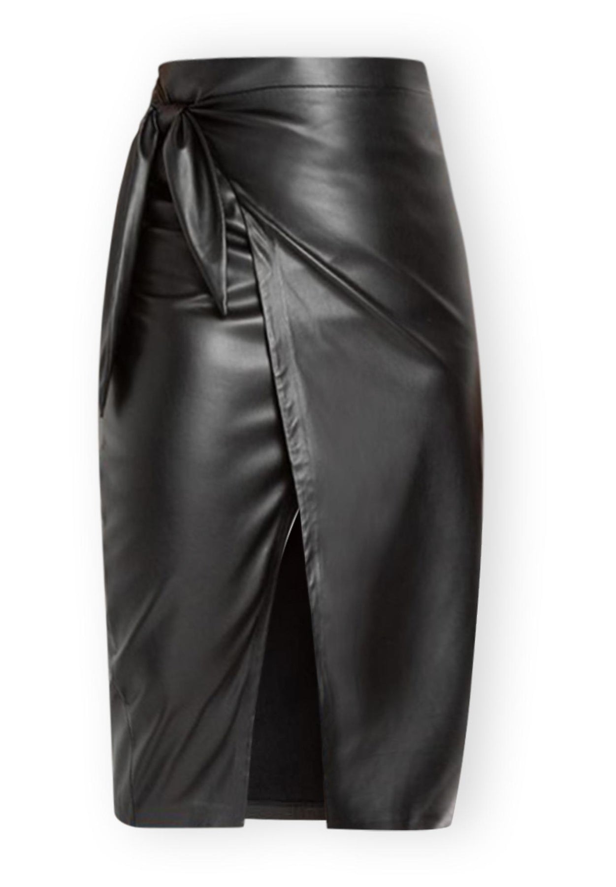 Wrap Front Faux Leather Midi Skirt