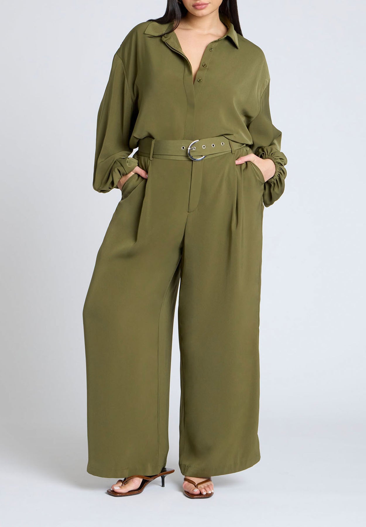 • Dropped shoulder, long puff sleeve with elastic cuff