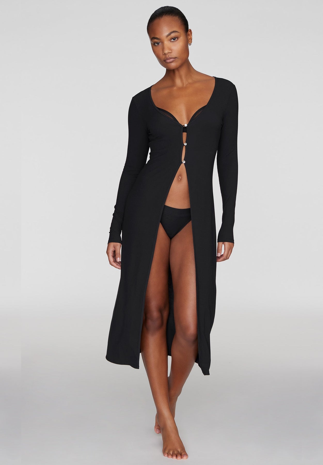 Cut from our incredibly soft and lightweight Modal Silk Rib, this flowy cardigan is the versatile layering piece you can easily wear inside and out.