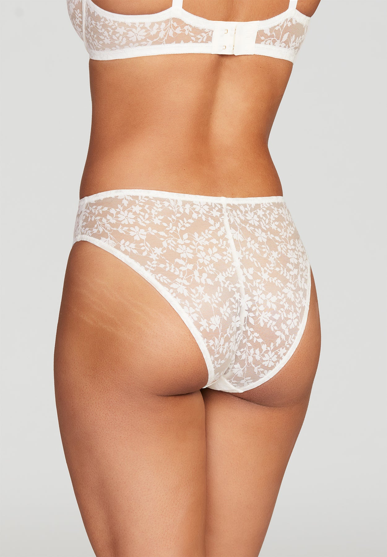 The Highwaist is a sensual take on a classic style in our soft, lightweight, botanical lace. Its high rise, high cut silhouette flatters the hips and elongates the legs.