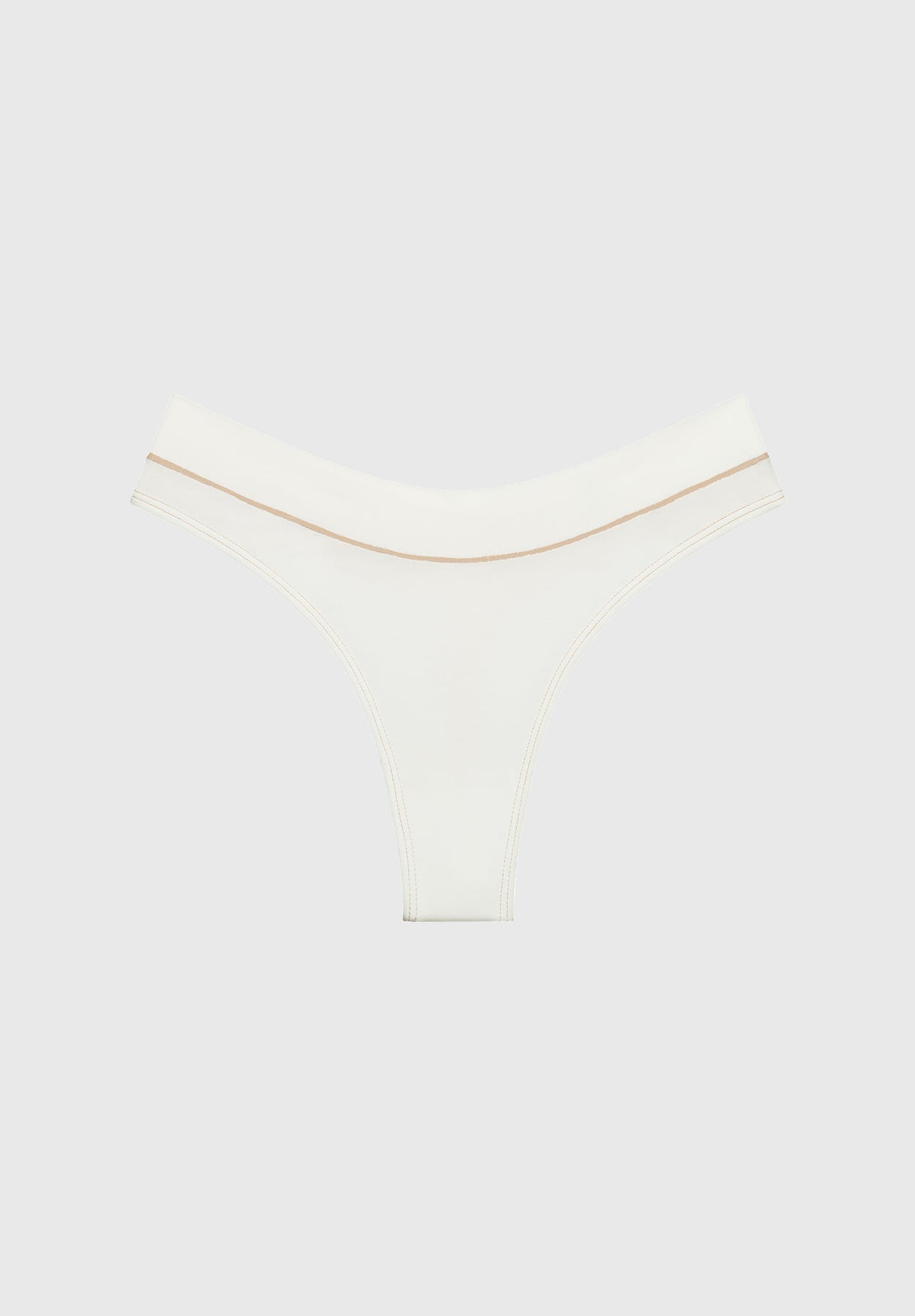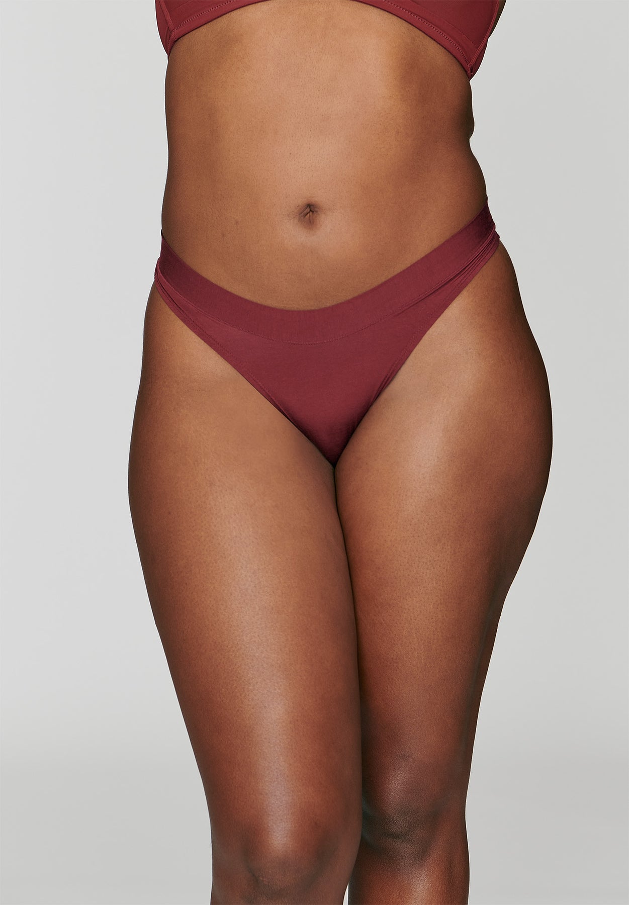 A minimal coverage, mid rise silhouette. The Thong is cut with the same flattering back V shape as our Bikini.