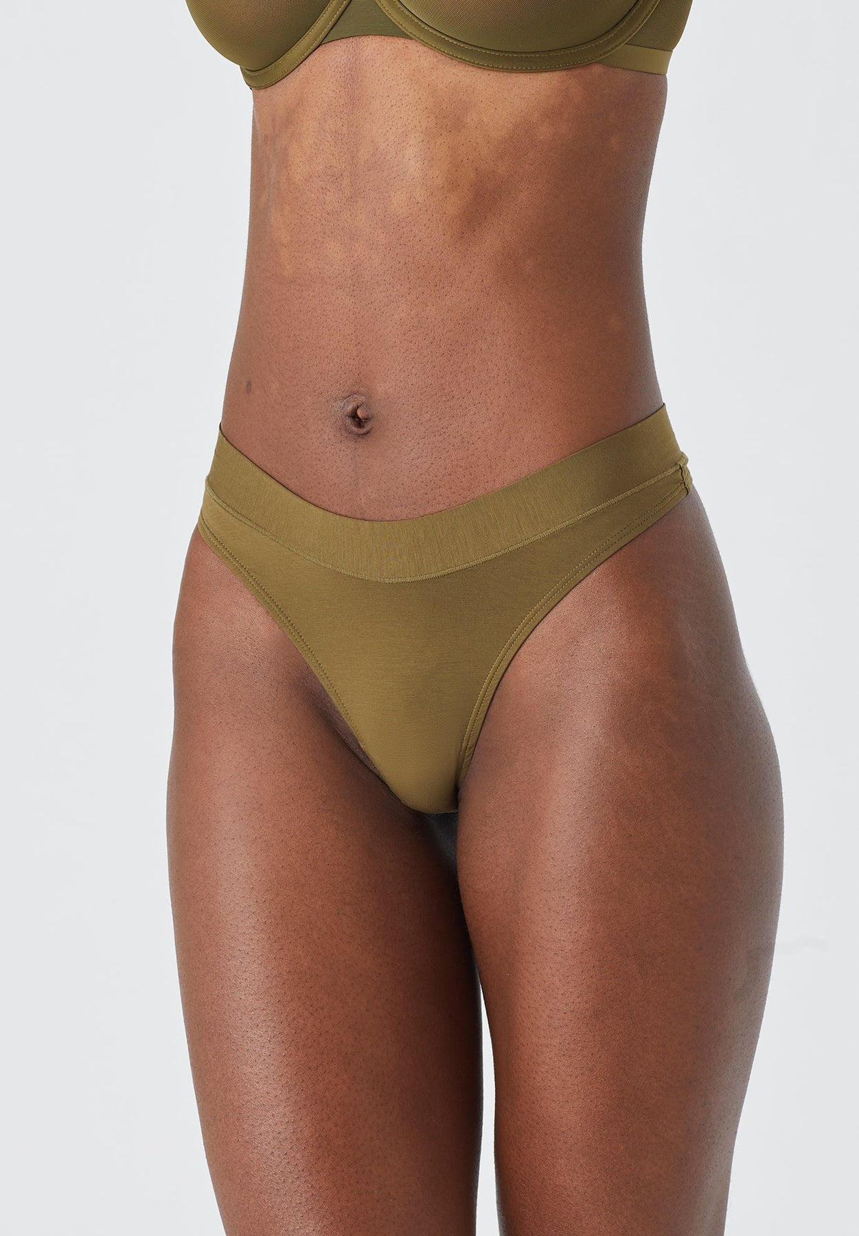A minimal coverage, mid-rise silhouette. The Thong is cut with the same flattering back V shape as our Bikini.