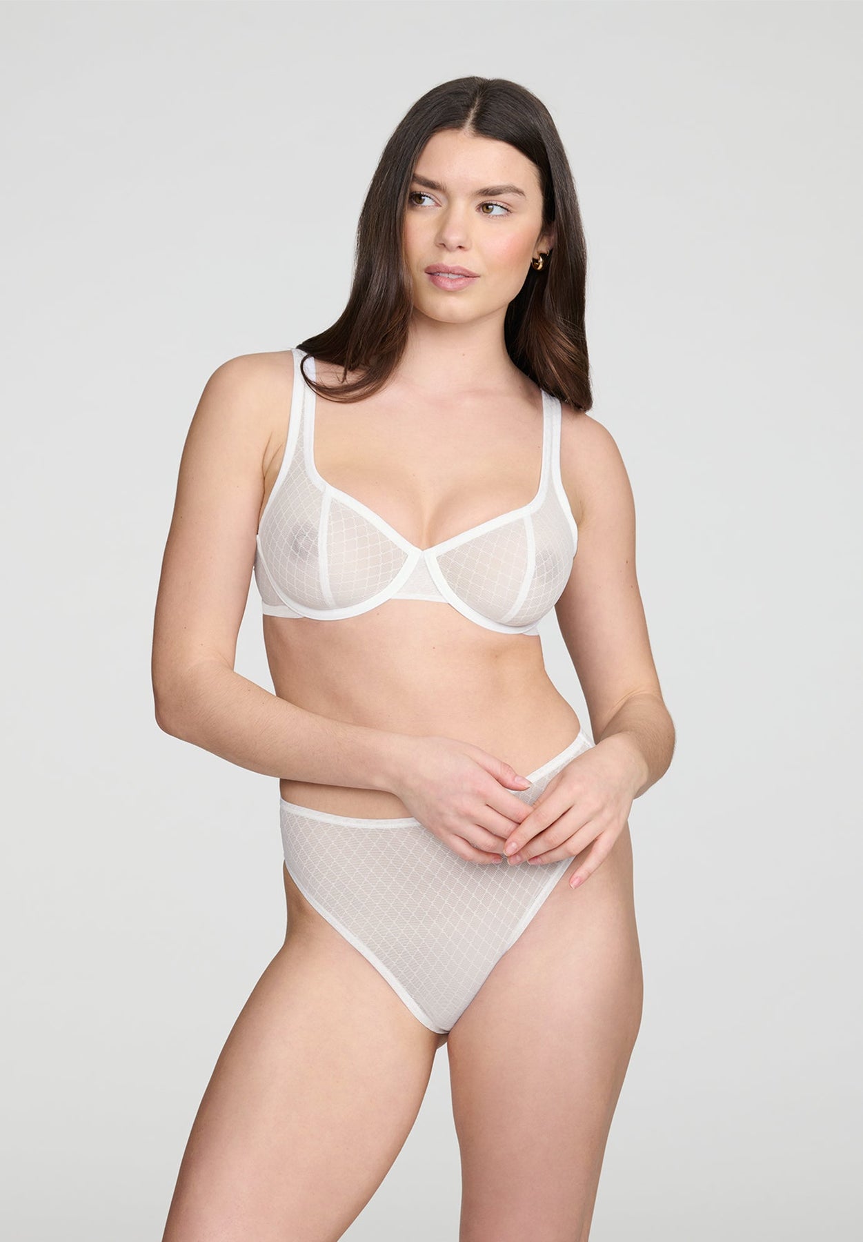 A chicer, more elevated take on the iconic curved silhouette, this Scoop bra comes delicately stitched in Trellis Lace that’s as functional as it is feminine. It’s soft, sheer, & lightweight, so you never have to sacrifice comfort and support.